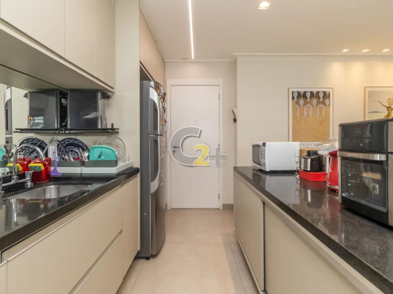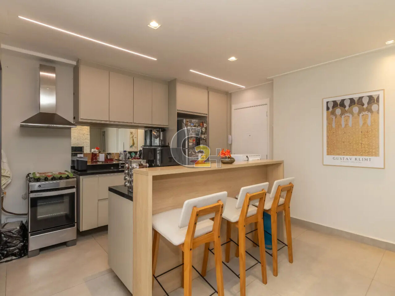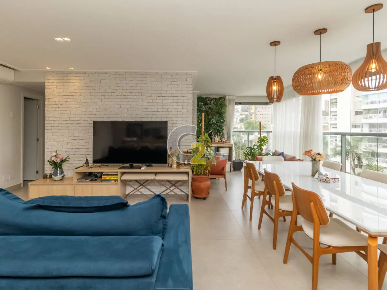 O imóvel está mobiliado, com móveis e eletrodomésticos novos e de alto padrão (sofá, mesas, cadeiras e mais).