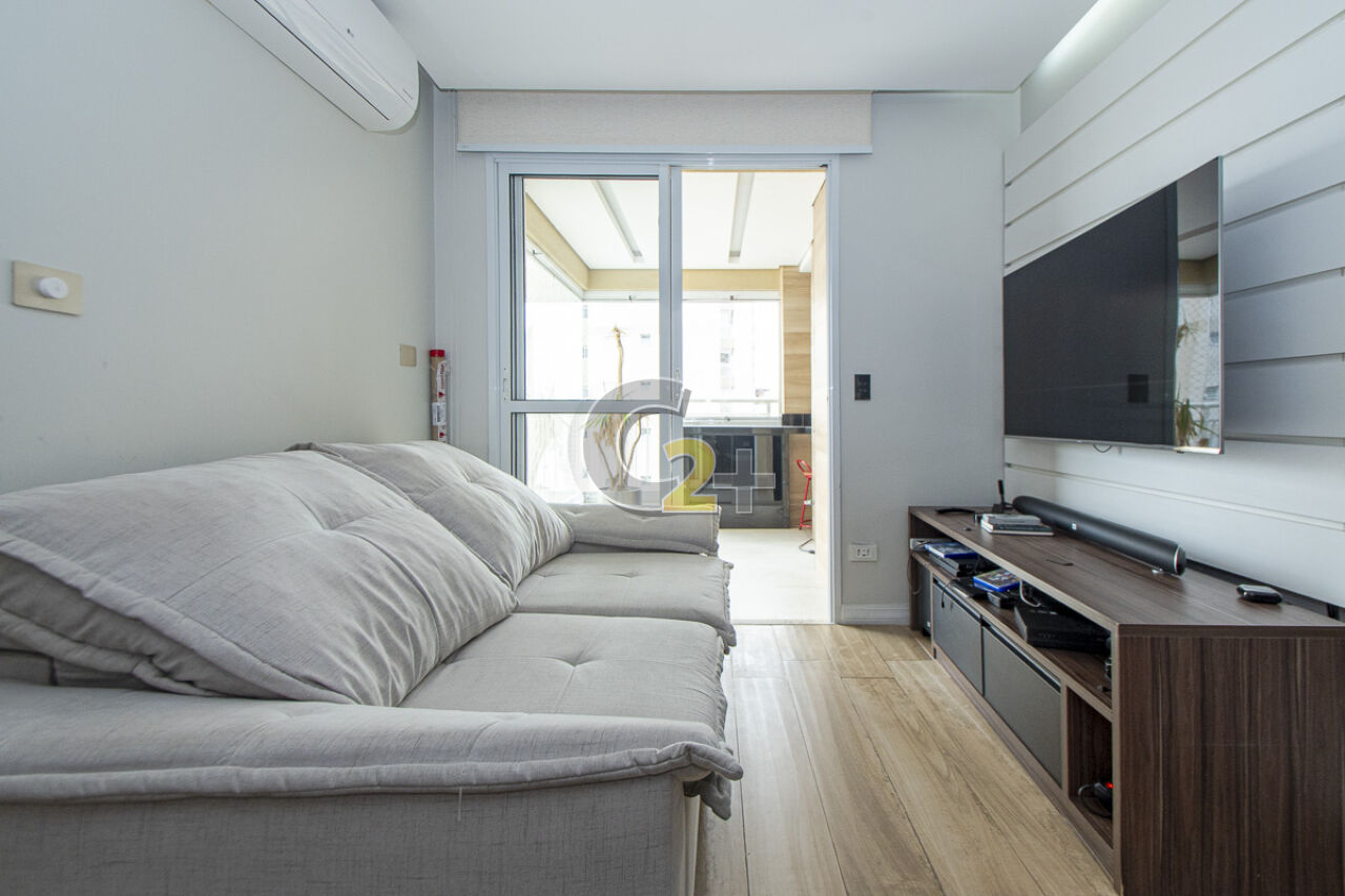 Apartamento à venda na Barra Funda com 60m², 2 quartos com ar condicionado, sendo 1 suíte, cozinha americana planejada integrada à sala para 2 ambientes, varanda com churrasqueira à carvão, área de serviço, 1 vaga de garagem definitiva, depósito.