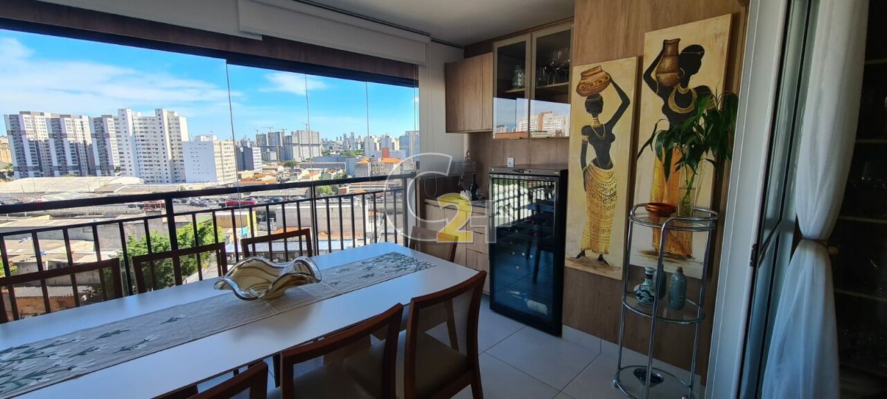 Apartamento à venda no Brás com 105m², 2 suites, sala para 2 ambientes, varanda, cozinha, área de serviço, 3 banheiros e 2 vagas de garagem.