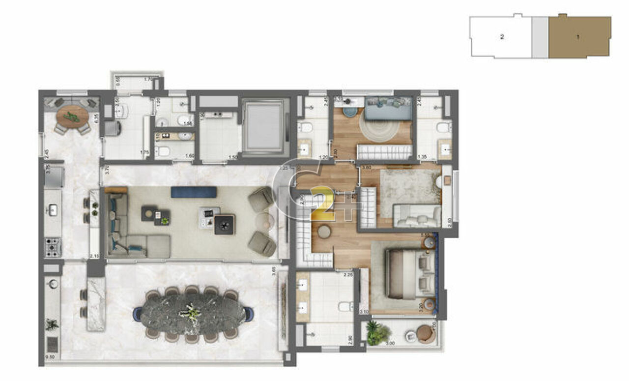 Apartamento à venda no Brooklin, 3 quartos sendo sendo 3 suítes, banheiro social, sala para 2 ambientes, cozinha, planejada área de serviço completa e 2 vagas de garagem.