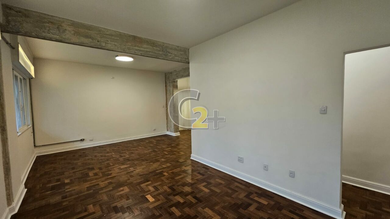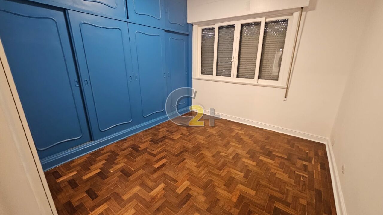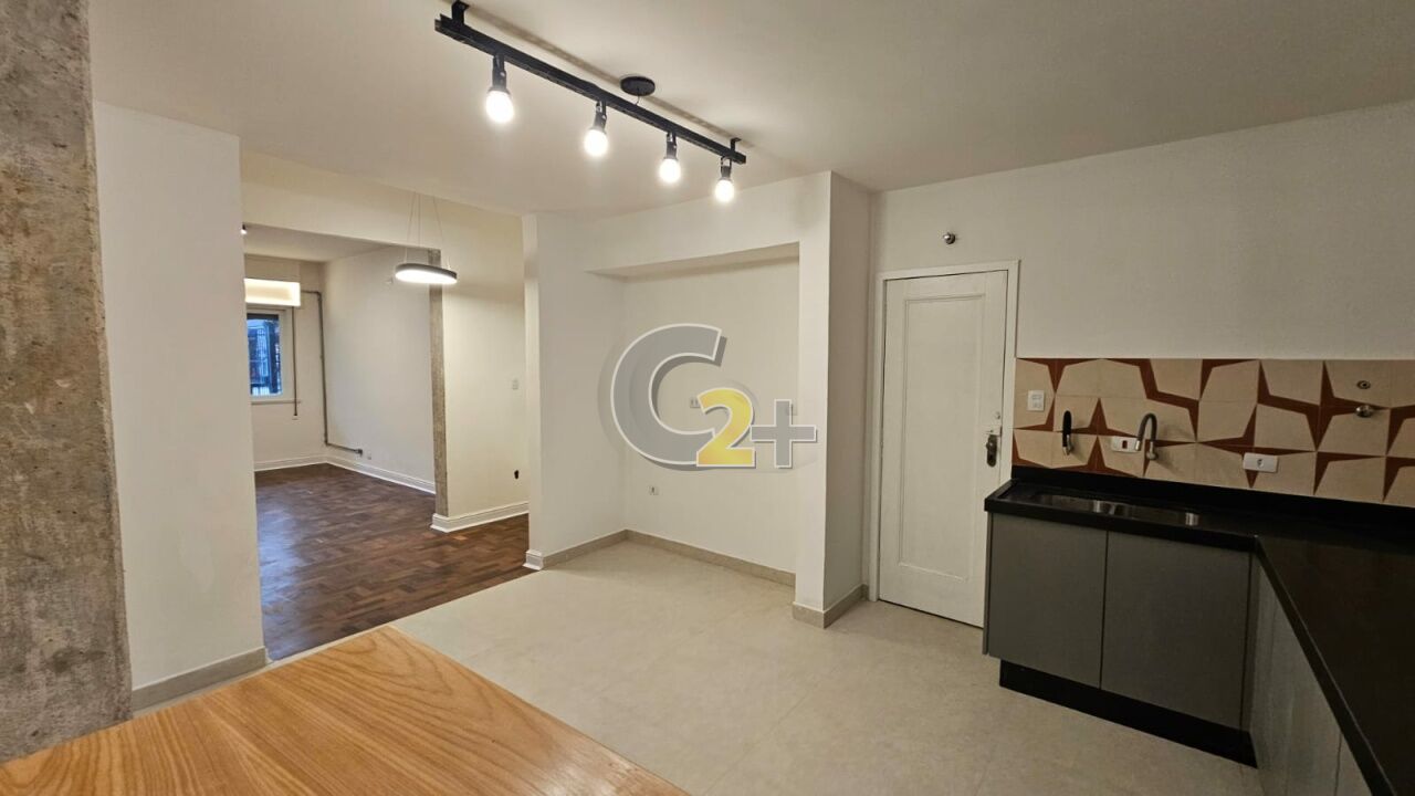 Apartamento à venda em Higienópolis com 2 quartos, 1 suíte, sendo que o terceiro quarto foi aberto para ampliar a sala, 2 banheiros, cozinha integrada, área de serviço e 1 vaga de garagem.