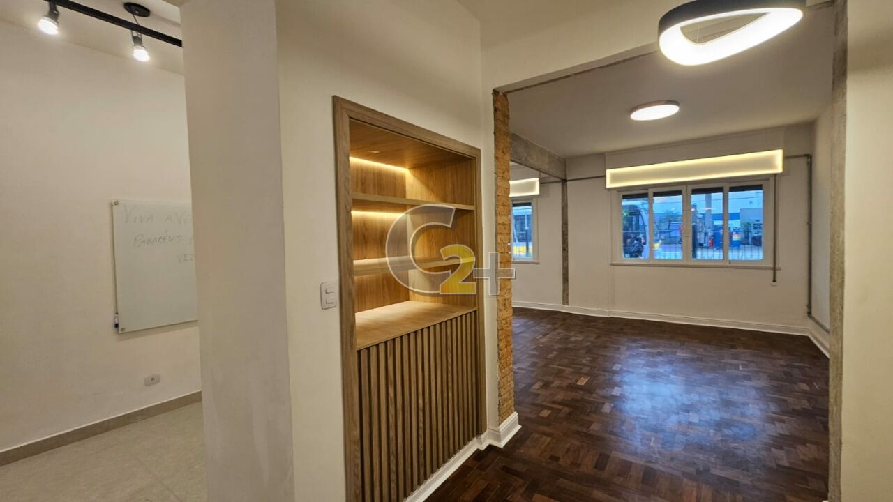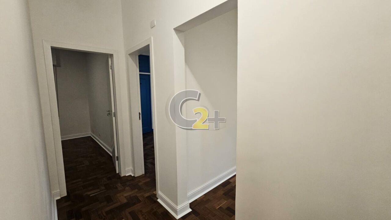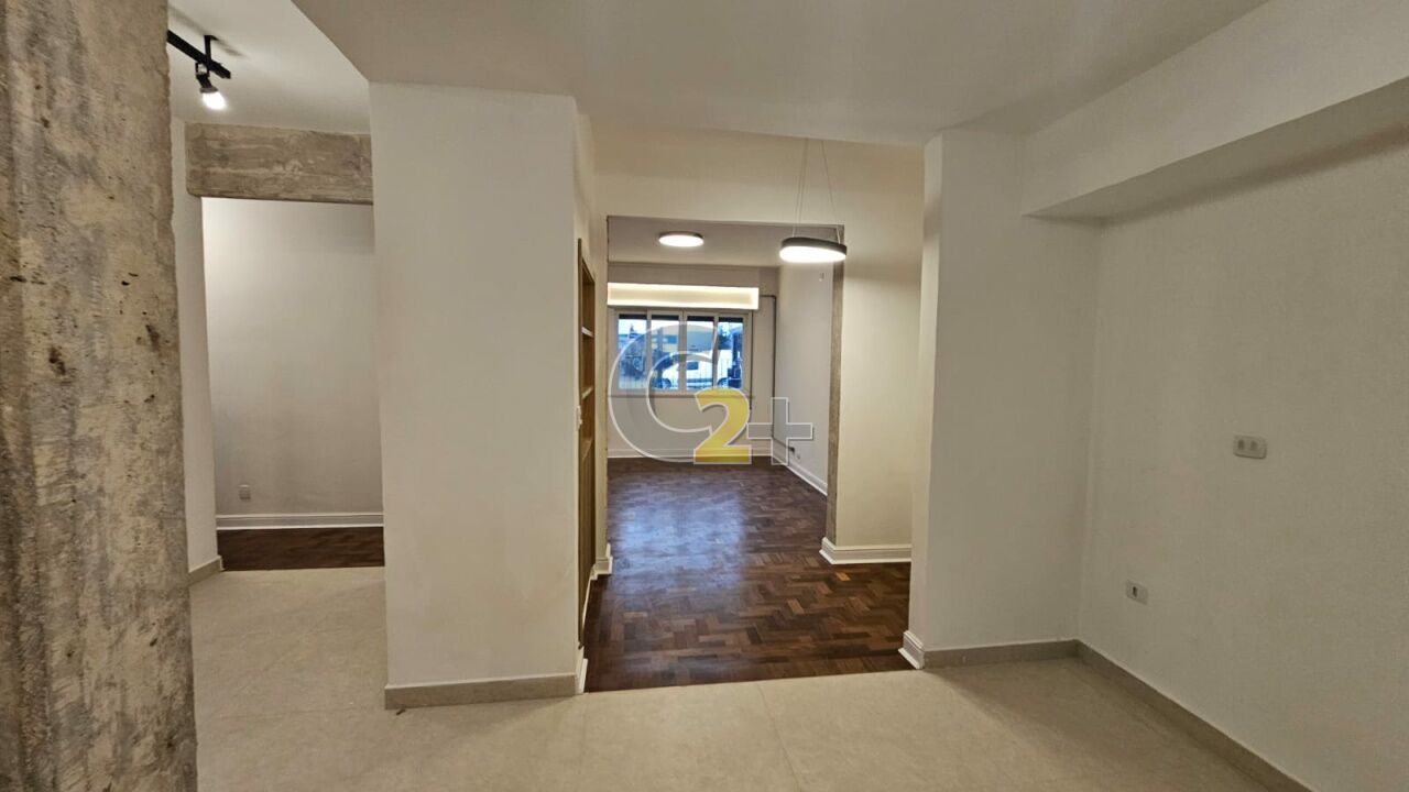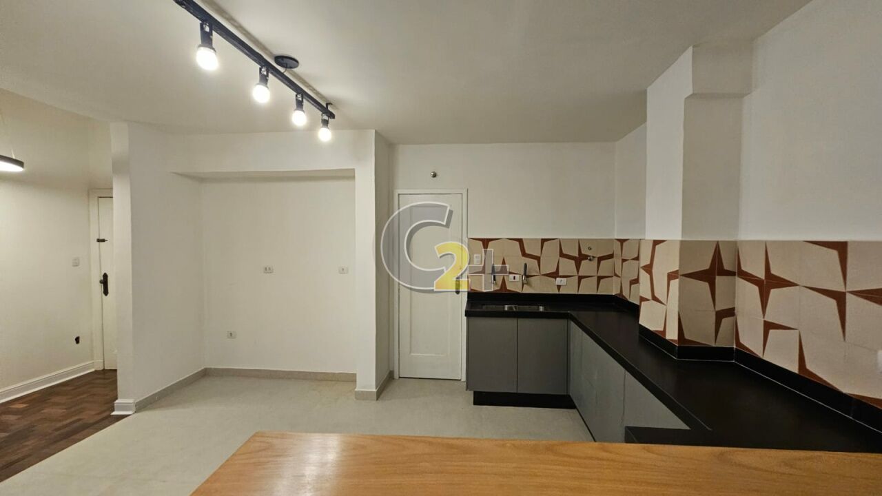 Apartamento à venda em Higienópolis com 2 quartos, 1 suíte, sendo que o terceiro quarto foi aberto para ampliar a sala, 2 banheiros, cozinha integrada, área de serviço e 1 vaga de garagem.