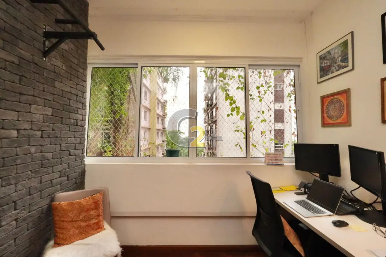 Apartamento à venda em Higienópolis com 87m² 2 quartos com armários, sendo 1 suíte com closet, sala ampla e arejada com iluminação natural para 2 ambientes, piso em tacos, dsuíte com closet, box e banheira, banheiro social com box, cozinha com armários, piso frio, área de serviço + banheiro de serviço, 1 vaga de garagem.