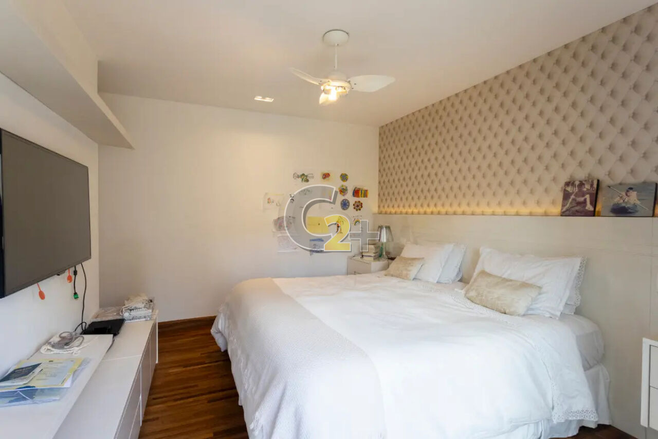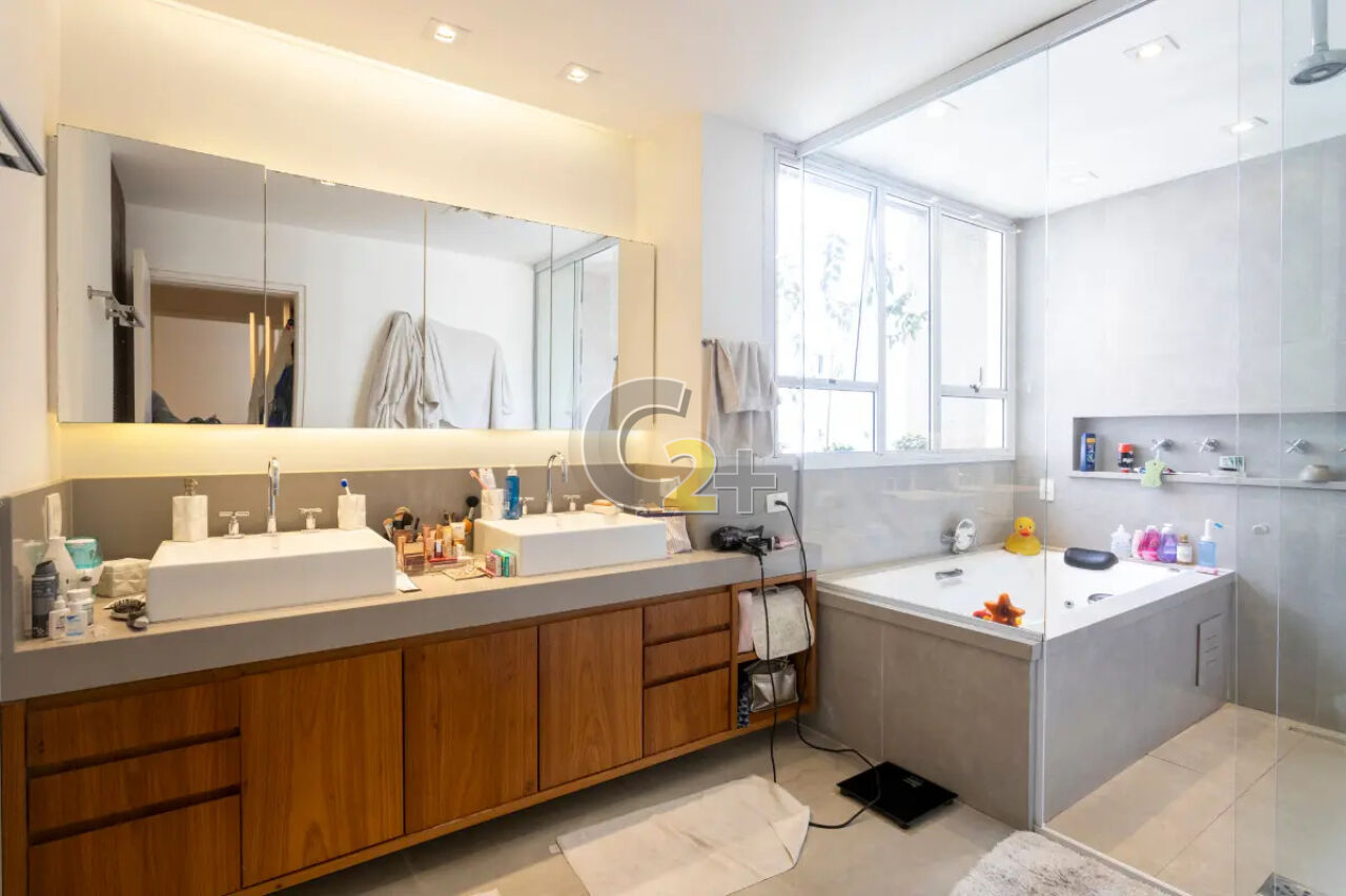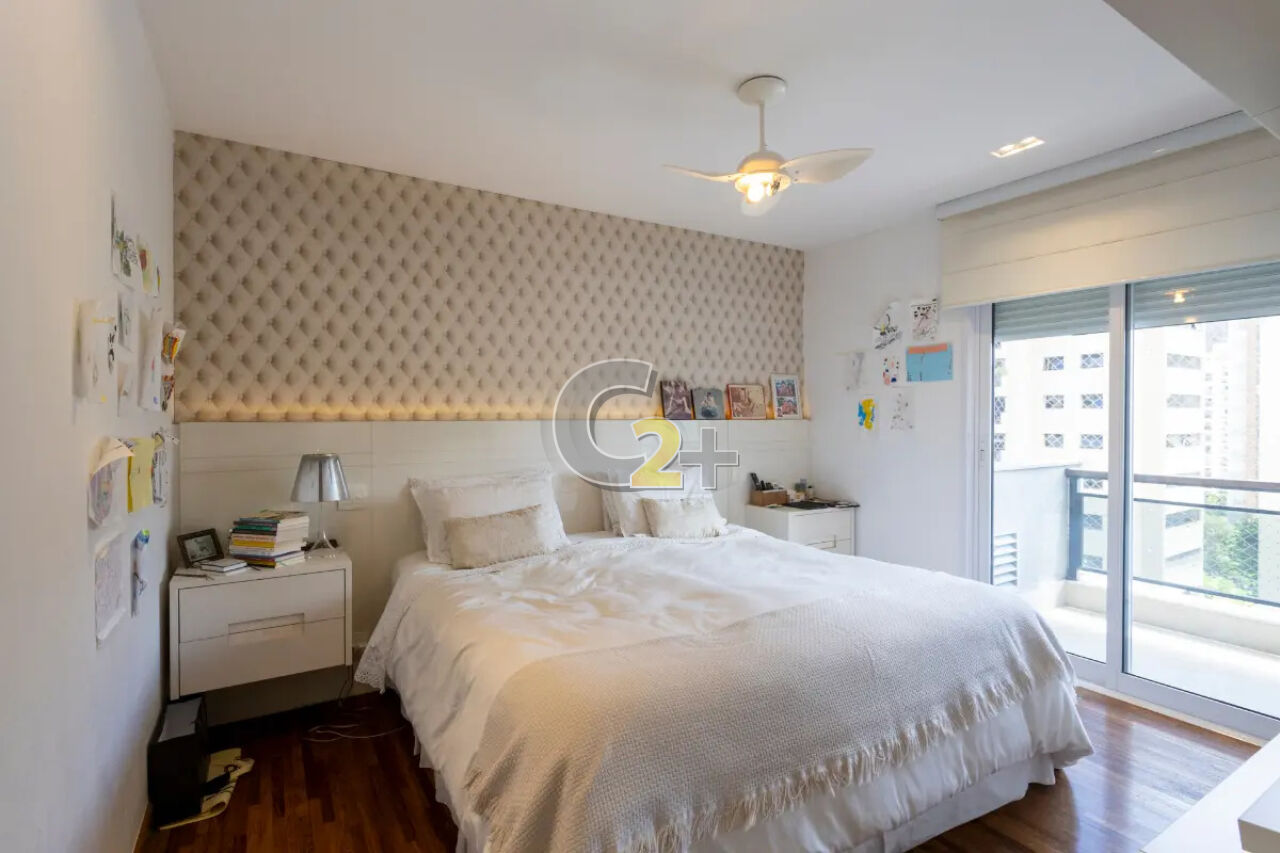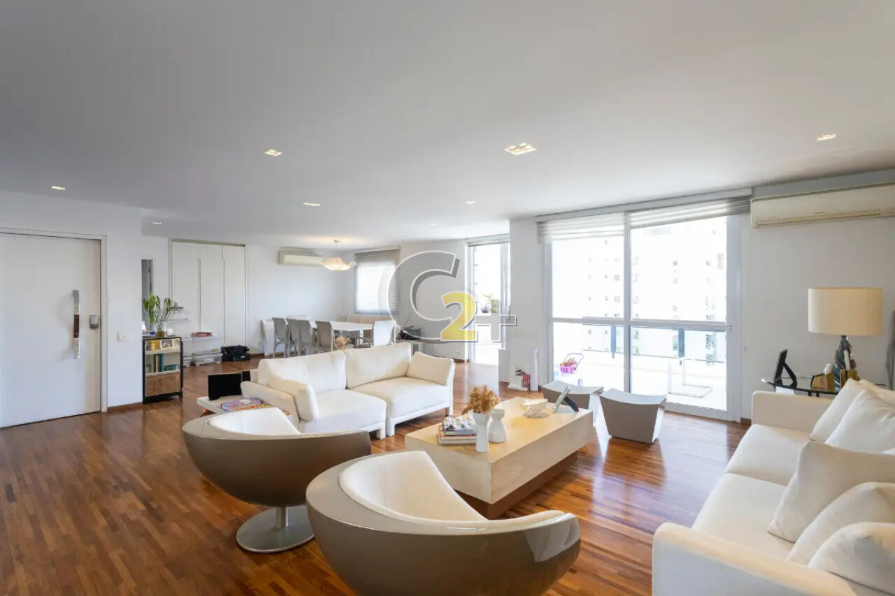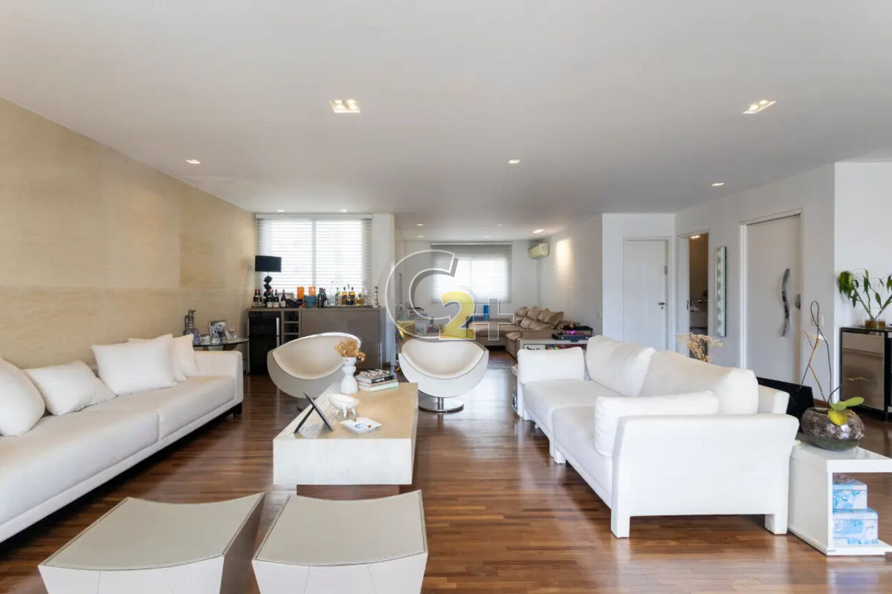 Apartamento á venda no Itaim Bibi com 270m², 3 quartos sendo 3 suítes e closet com armários, sala para 3 ambientes, banheiro, cozinha, área de serviço completa e com 4 vagas de garagem.