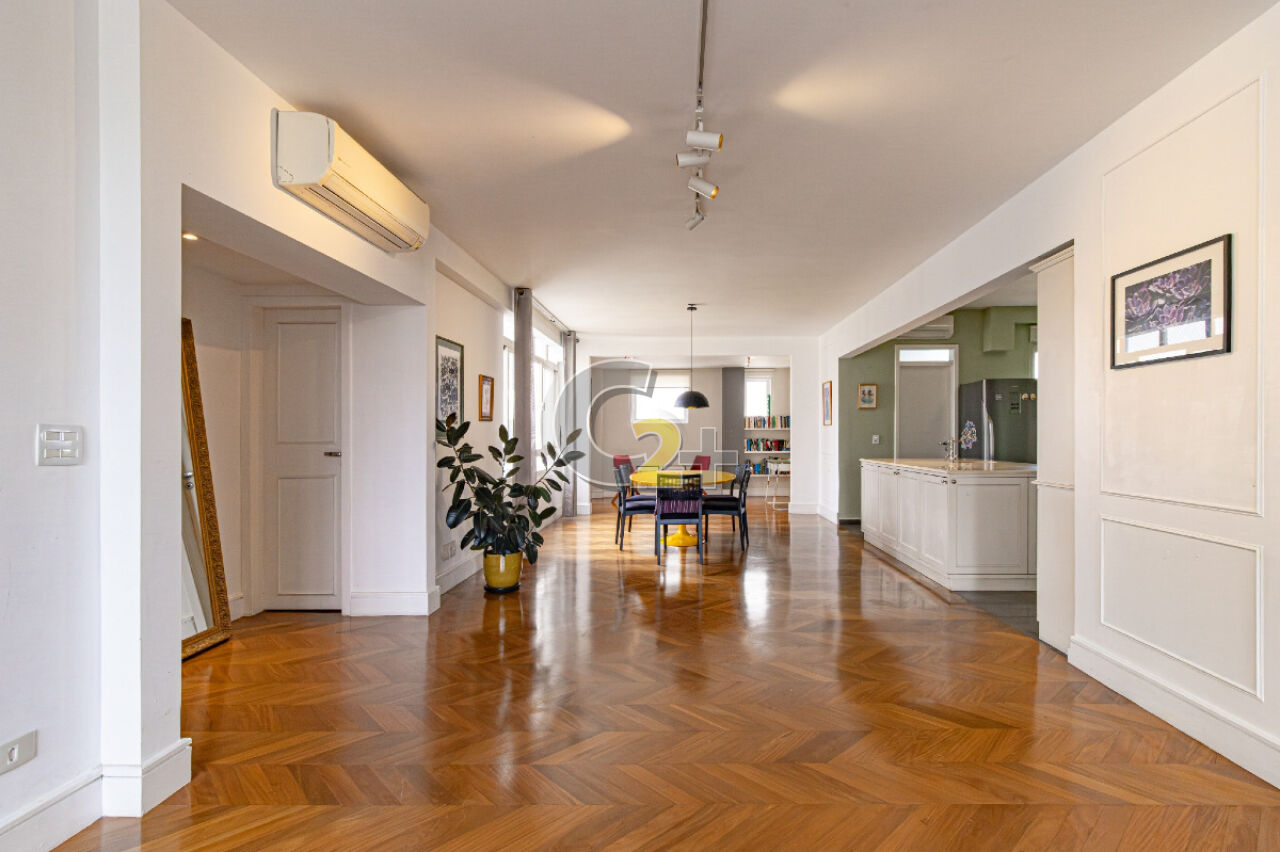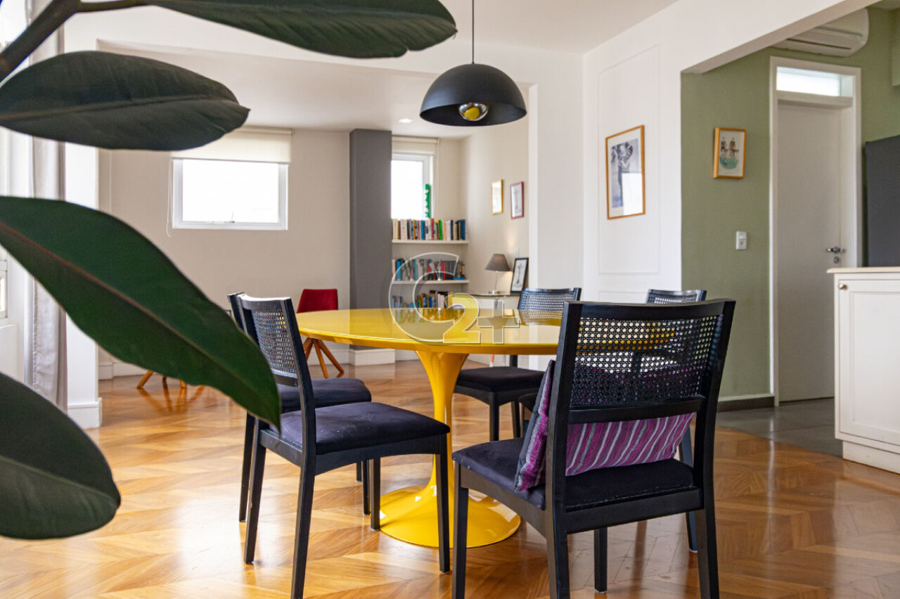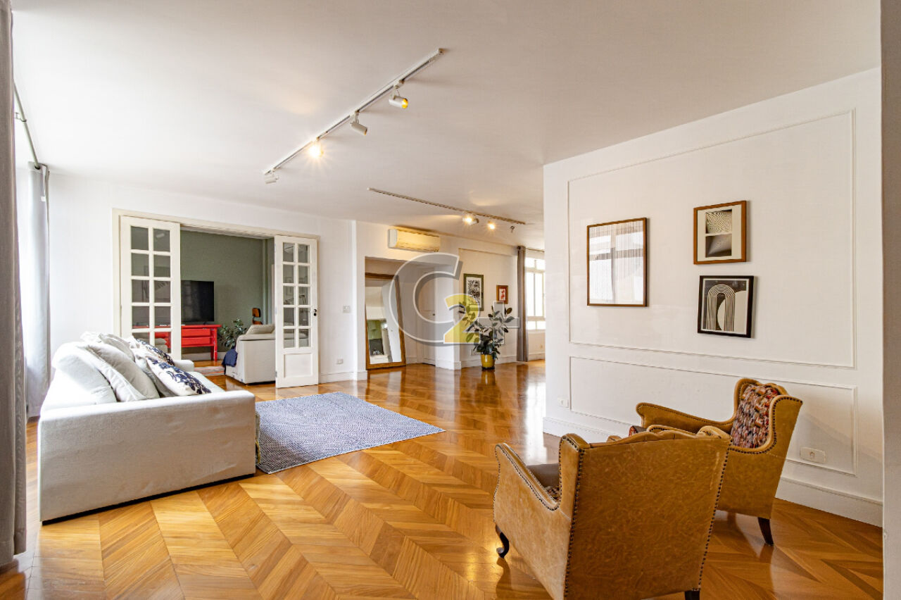 Apartamento à venda em Jardim América com 172m², 3 quartos, sendo 1 suíte, estando atualmente, um deles integrado à área social como sala de TV, o que amplia ainda mais o living. Caso o novo morador deseje restabelecer a configuração original, é muito simples.