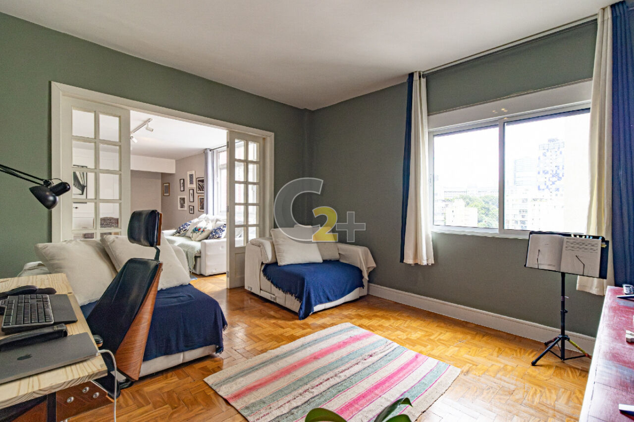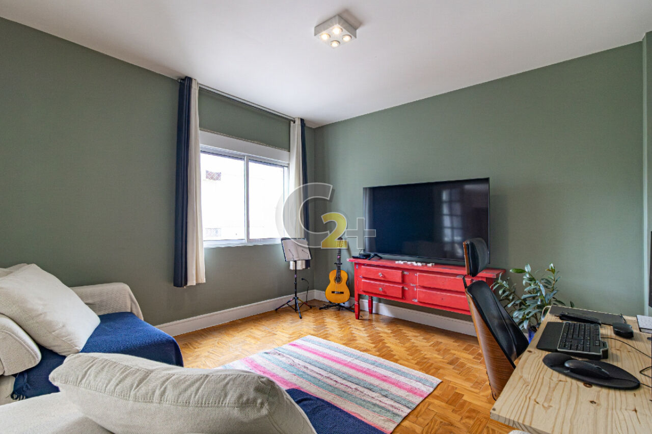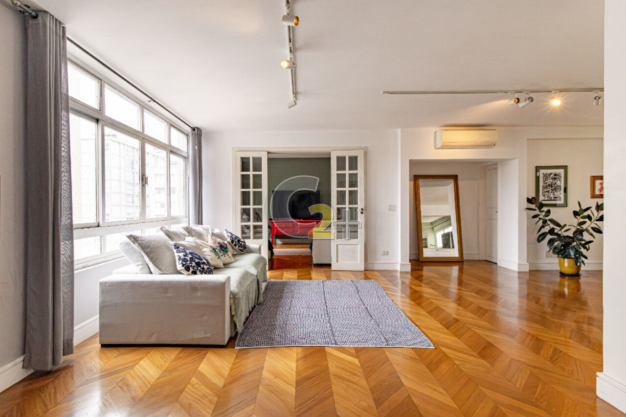 Apartamento à venda em Jardim América com 172m², 3 quartos, sendo 1 suíte, estando atualmente, um deles integrado à área social como sala de TV, o que amplia ainda mais o living. Caso o novo morador deseje restabelecer a configuração original, é muito simples.
