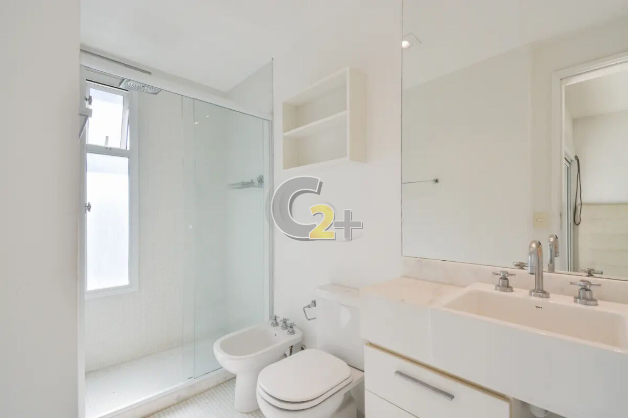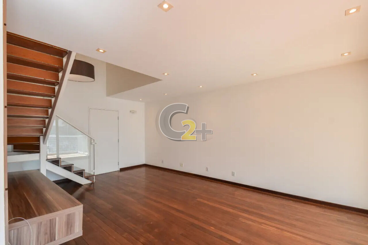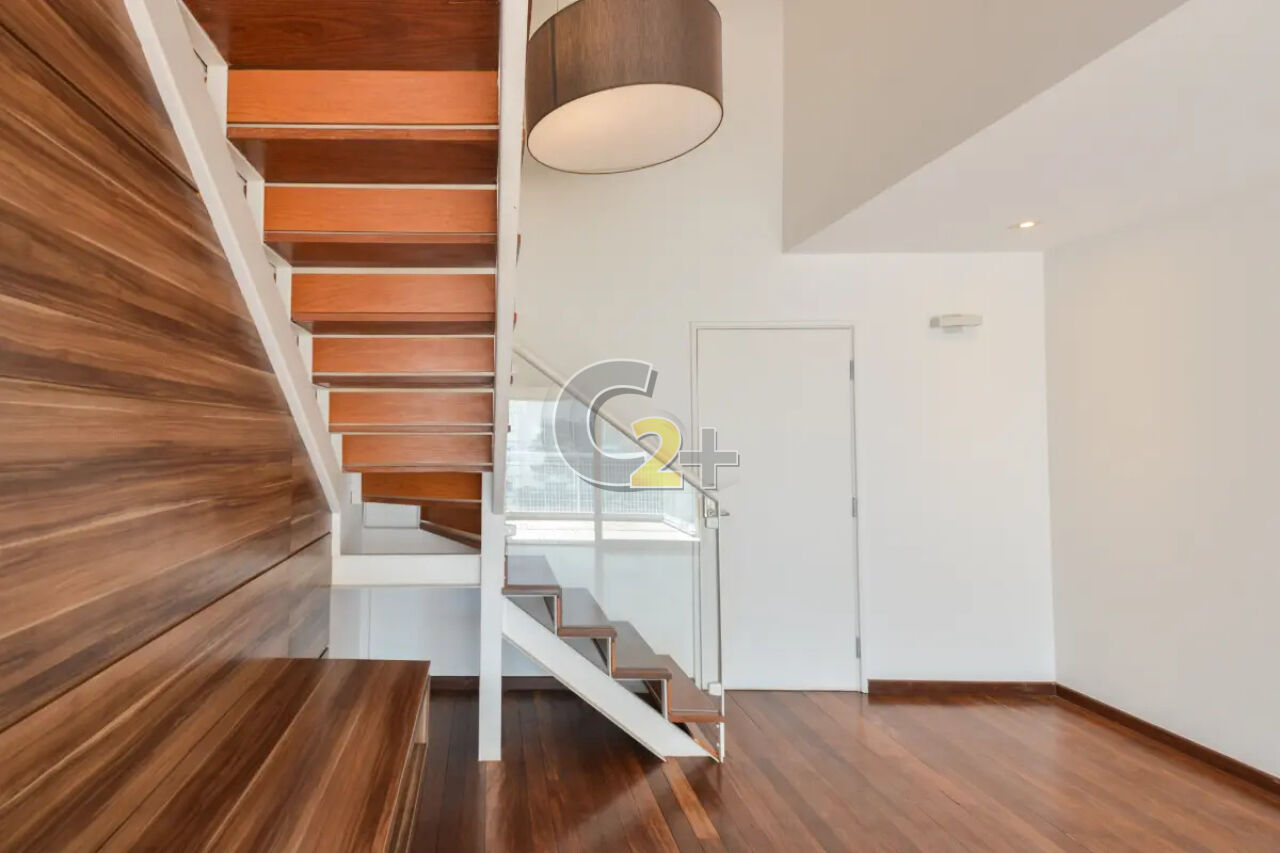 Apartamento duplex a à venda no Jardim Paulista com 150 m², 3 quartos sendo 3 suítes, lavabo, sala para 2 ambientes, cozinha planejada, área de serviço completa e 3 vagas de garagem.