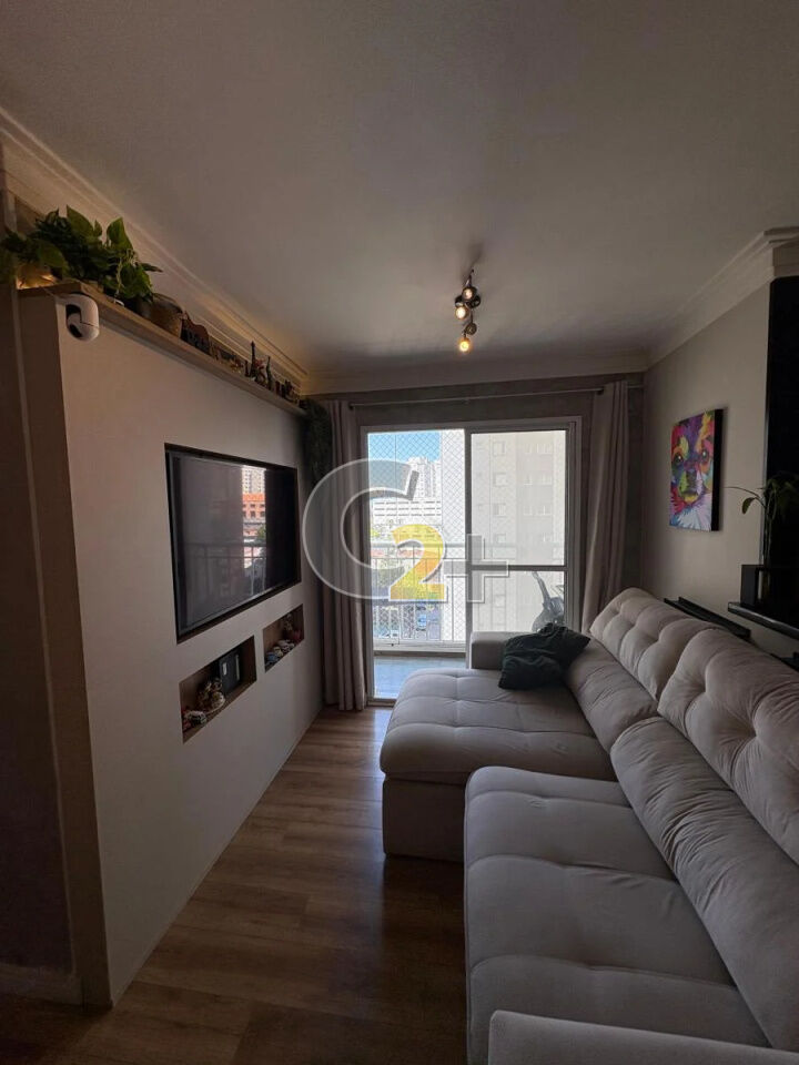 Apartamento à venda na Mooca com 55m², 2 quartos com móveis planejados, sala para 2 ambientes, varanda, cozinha, área de serviço, 1 vaga de garagem.