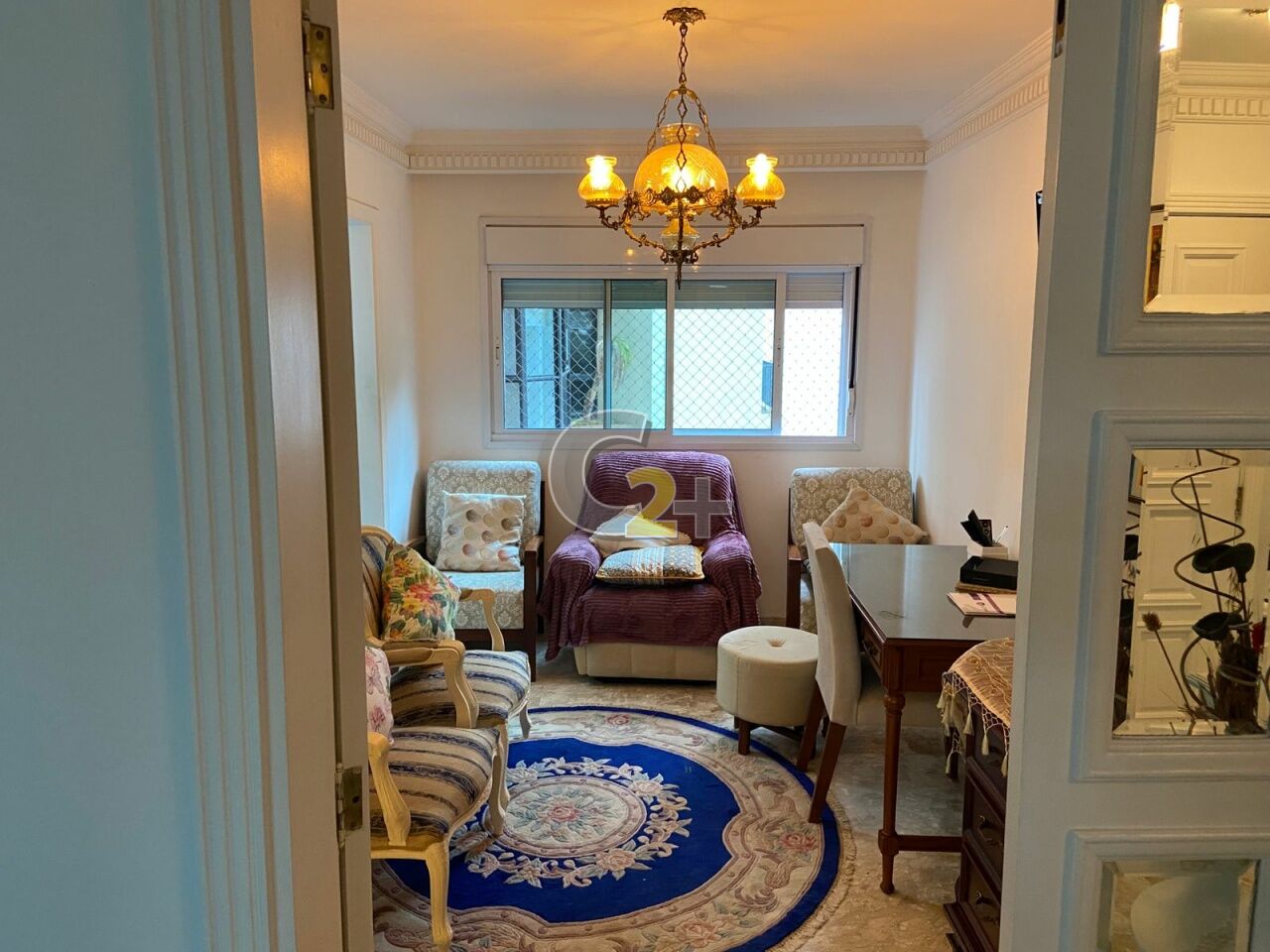 Apartamento à venda no Pacaembu com 230m², distribuídos em 3 quartos, todos suítes, sala para 2 ambientes, cozinha, área de serviço completa, 4 vagas de garagem.
