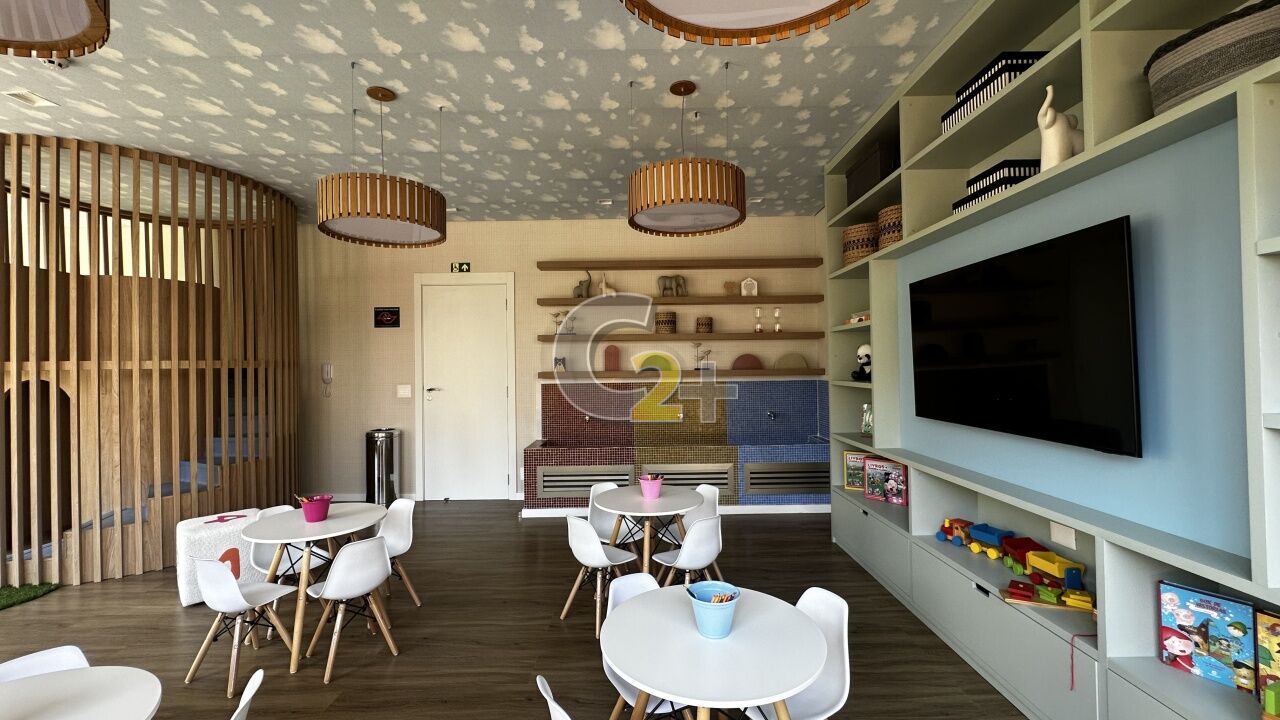 Condomínio com portaria 24 horas, elevador, academia, piscina, quadra esportiva, salão de festas, playground e brinquedoteca.