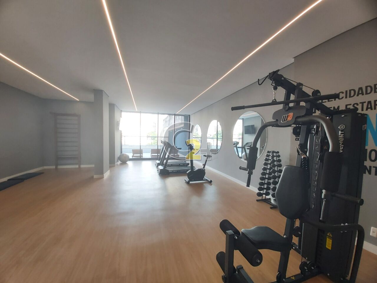 Condomínio com academia, brinquedoteca, sauna, piscina.