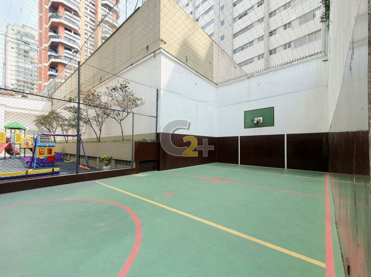 Prédio com Piscina, sauna, salão de festas, salão de jogos, churrasqueira, quadra poliesportiva, academia, playground e brinquedoteca.
