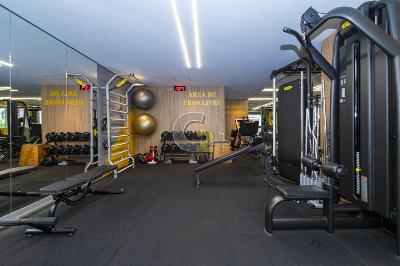 Condomínio com portaria 24 horas, academia, piscina, quadra esportiva, salão de festas, gás encanado, churrasqueira, playground, sauna e espaço gourmet na área comum.