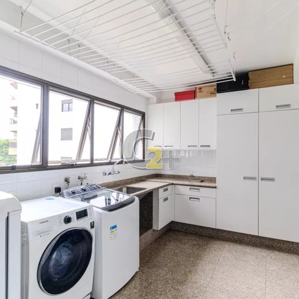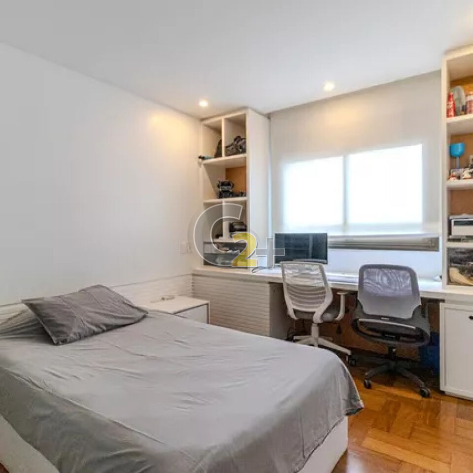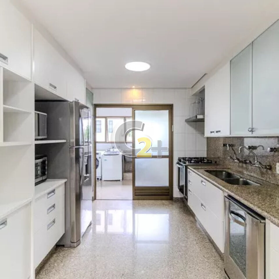 Apartamento a venda em Higienópolis com 303m², 3 suítes repletas de armários, sala para 4 ambientes, cozinha completa, área de serviço com dependência completa, 4 vagas de garagem.