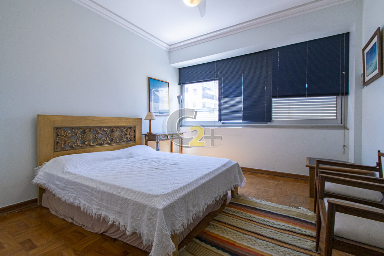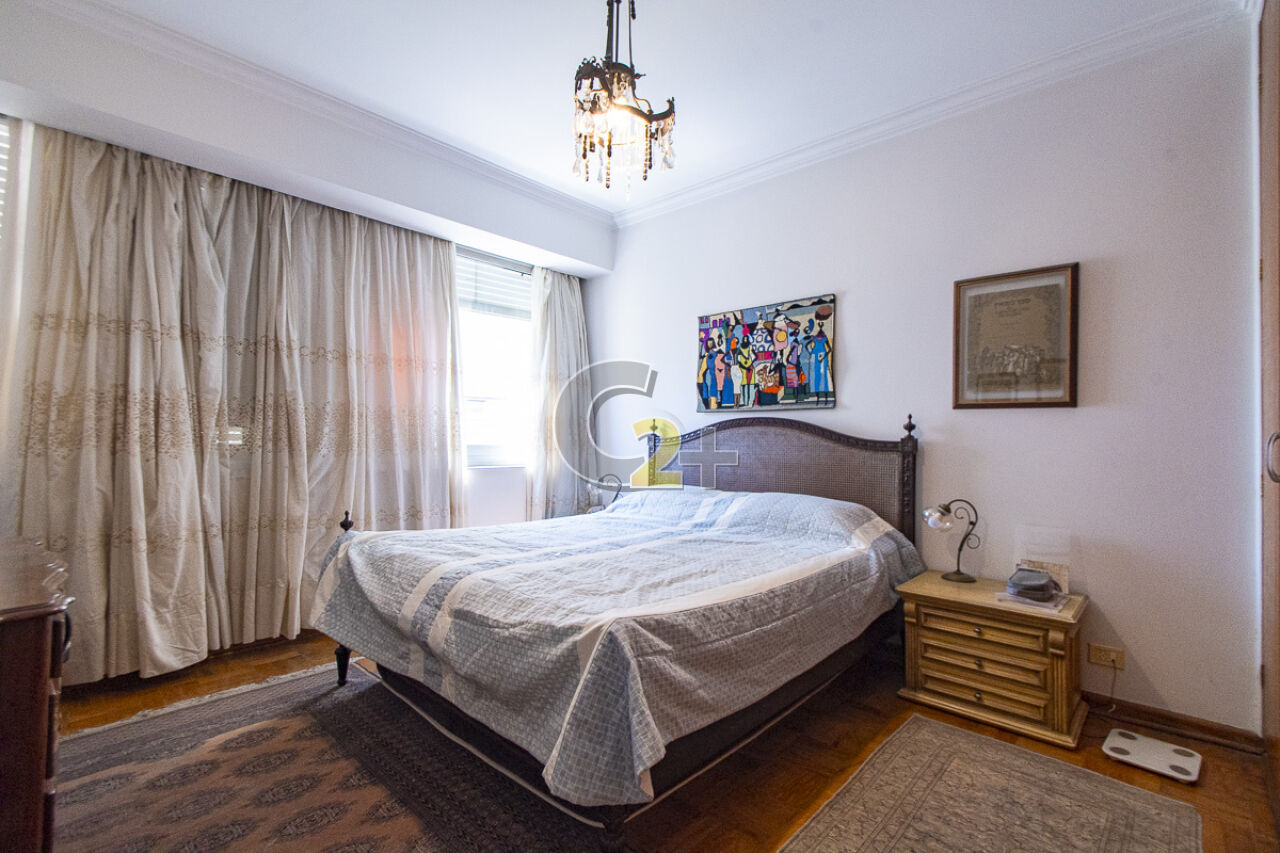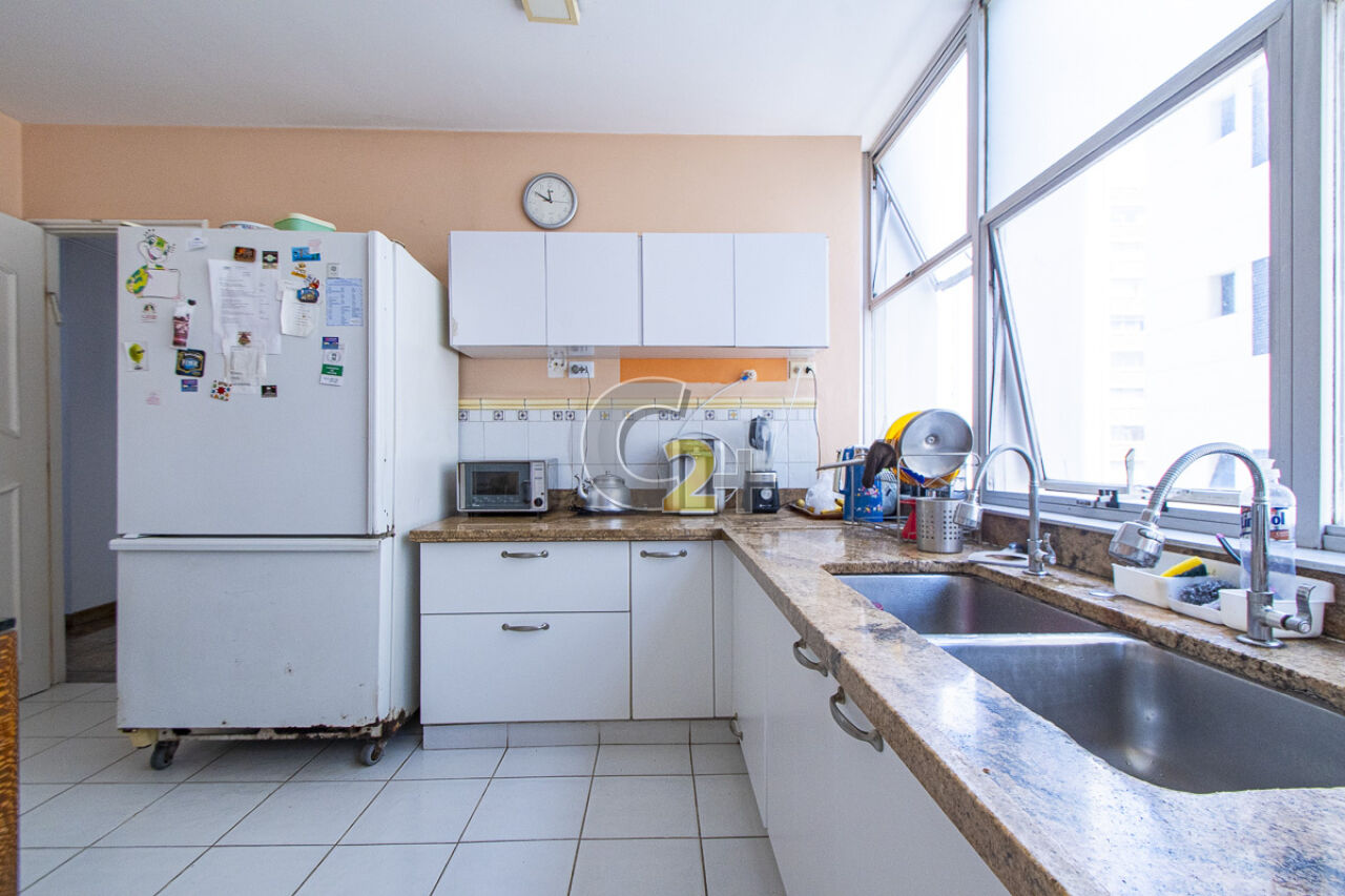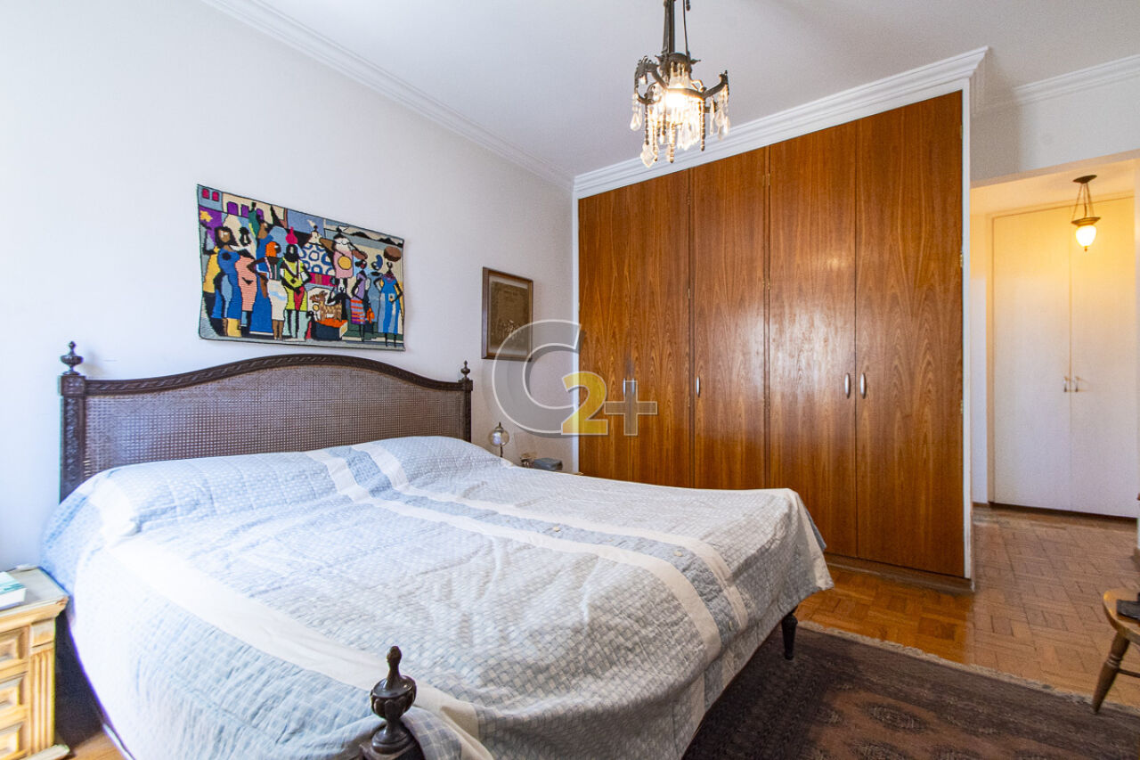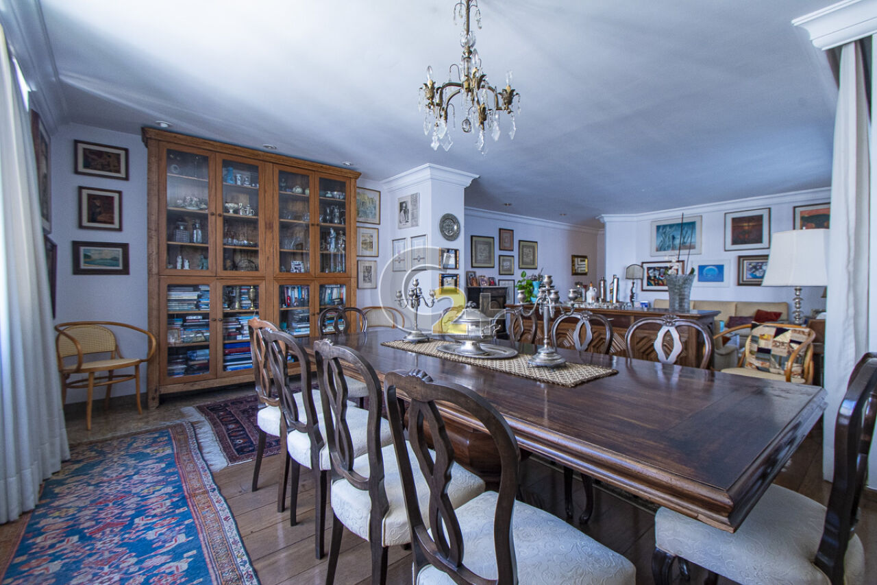 Apartamento à venda em Higienópolis com 263m², 4 quartos, sendo 2 suítes, sala para 3 ambientes com piso de madeira, janelão, ensolarado, cozinha moderna com armários planejados e área de serviço com dependência completa repletos de armários embutidos, banheiros com ventilação natural e box de vidro, 2 vagas de garagem fixa.