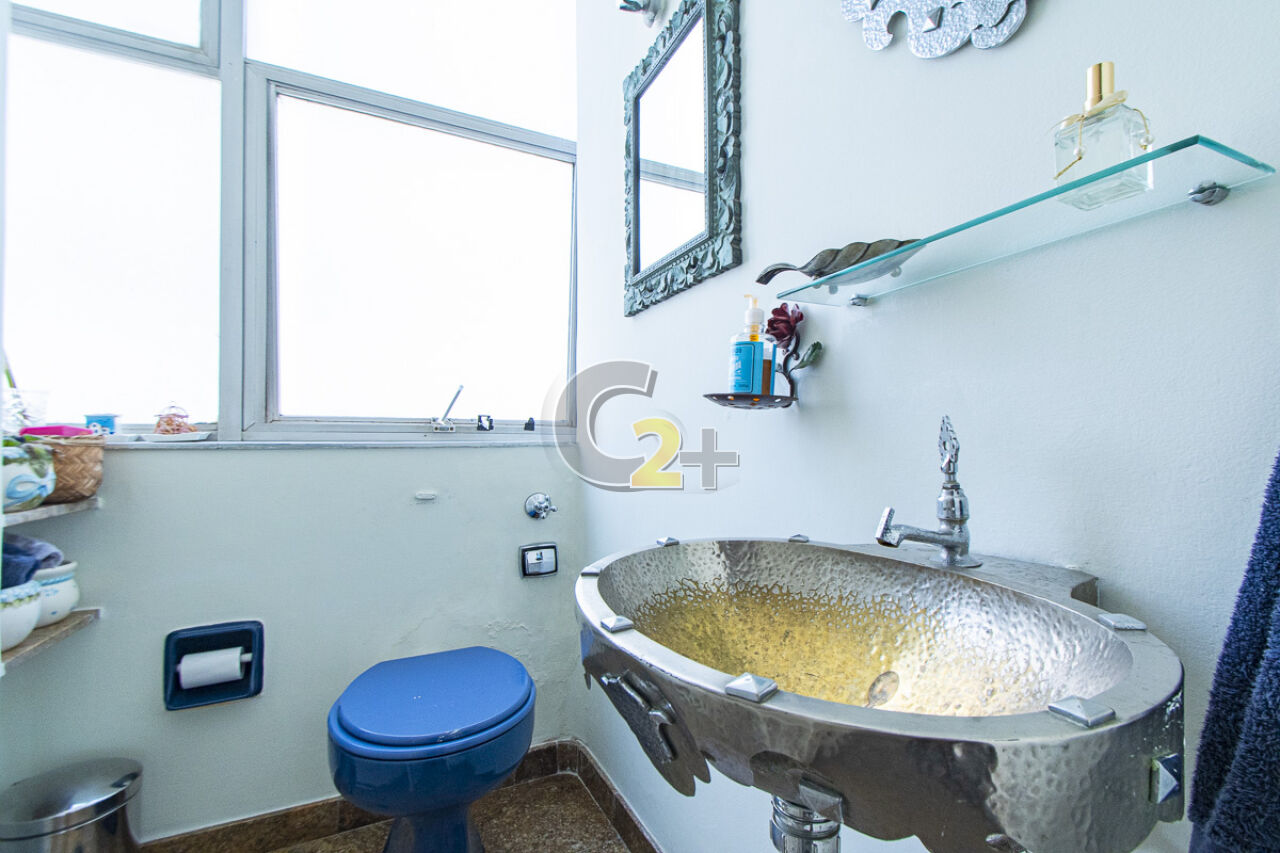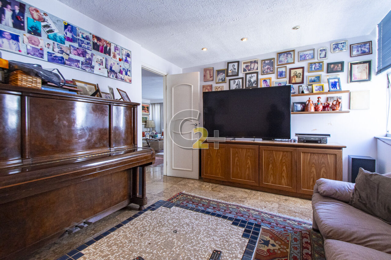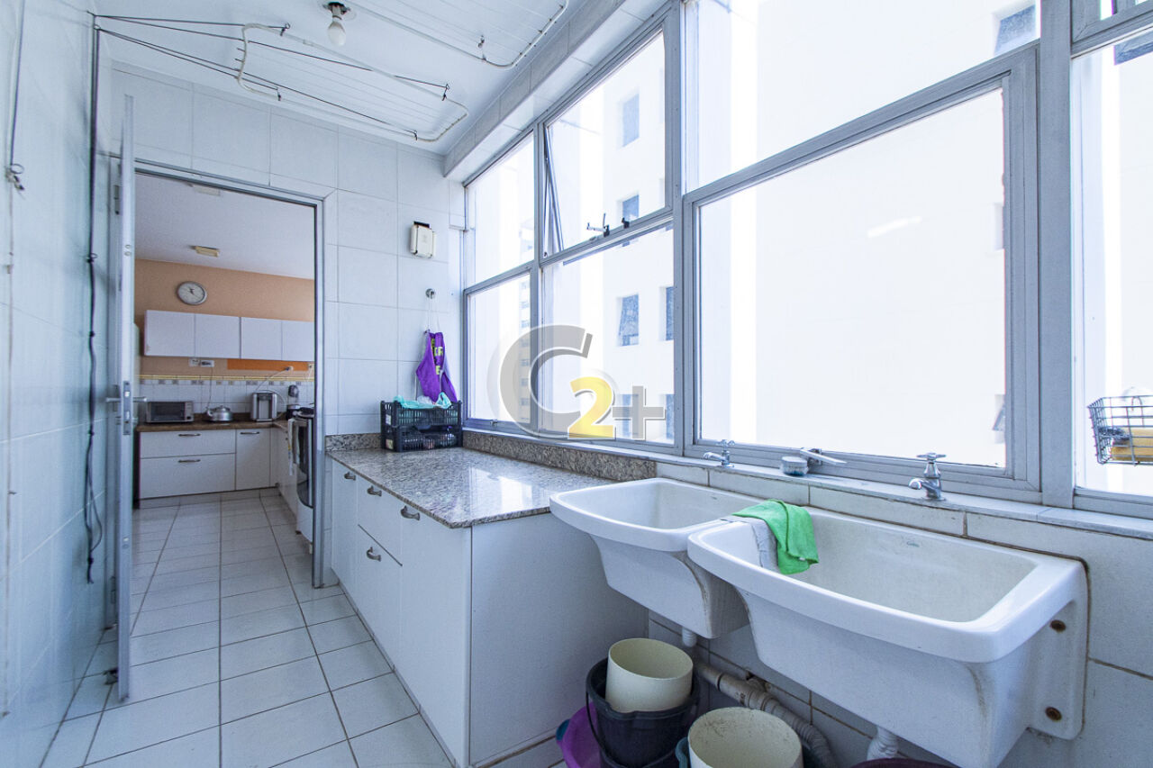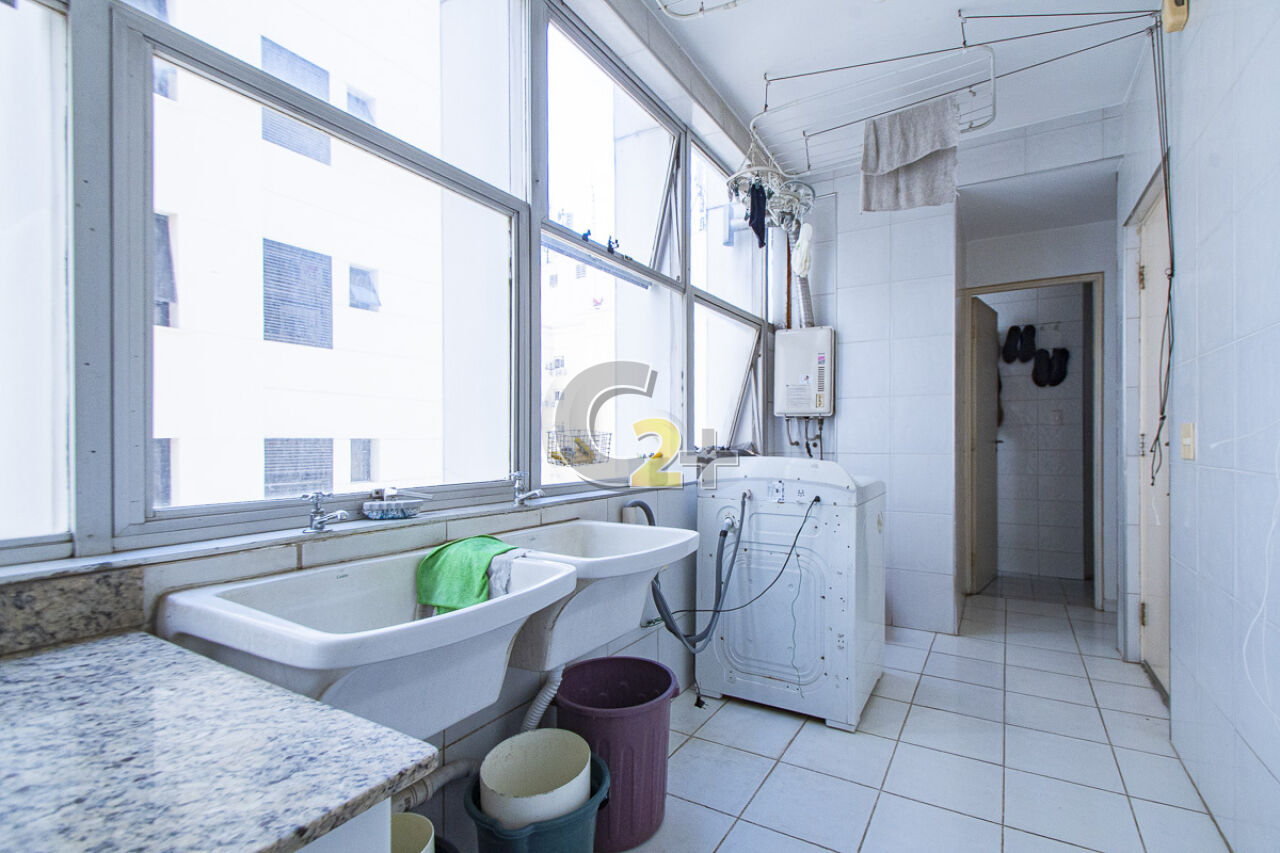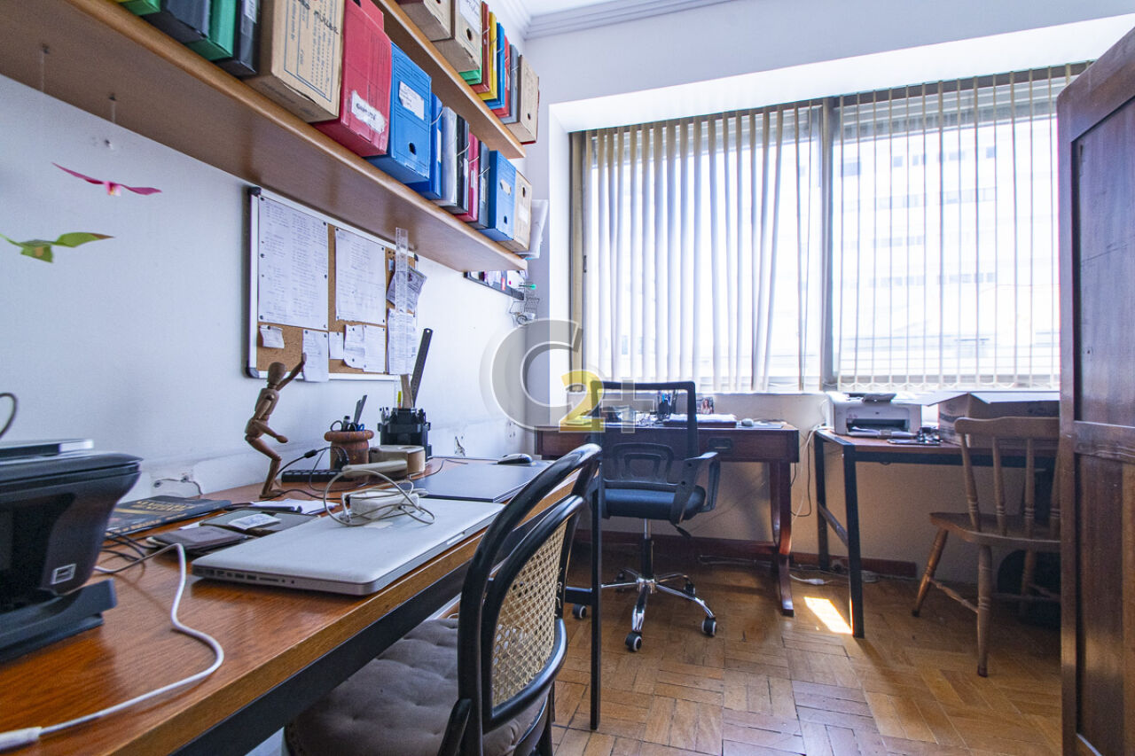 Apartamento à venda em Higienópolis com 263m², 4 quartos, sendo 2 suítes, sala para 3 ambientes com piso de madeira, janelão, ensolarado, cozinha moderna com armários planejados e área de serviço com dependência completa repletos de armários embutidos, banheiros com ventilação natural e box de vidro, 2 vagas de garagem fixa.
