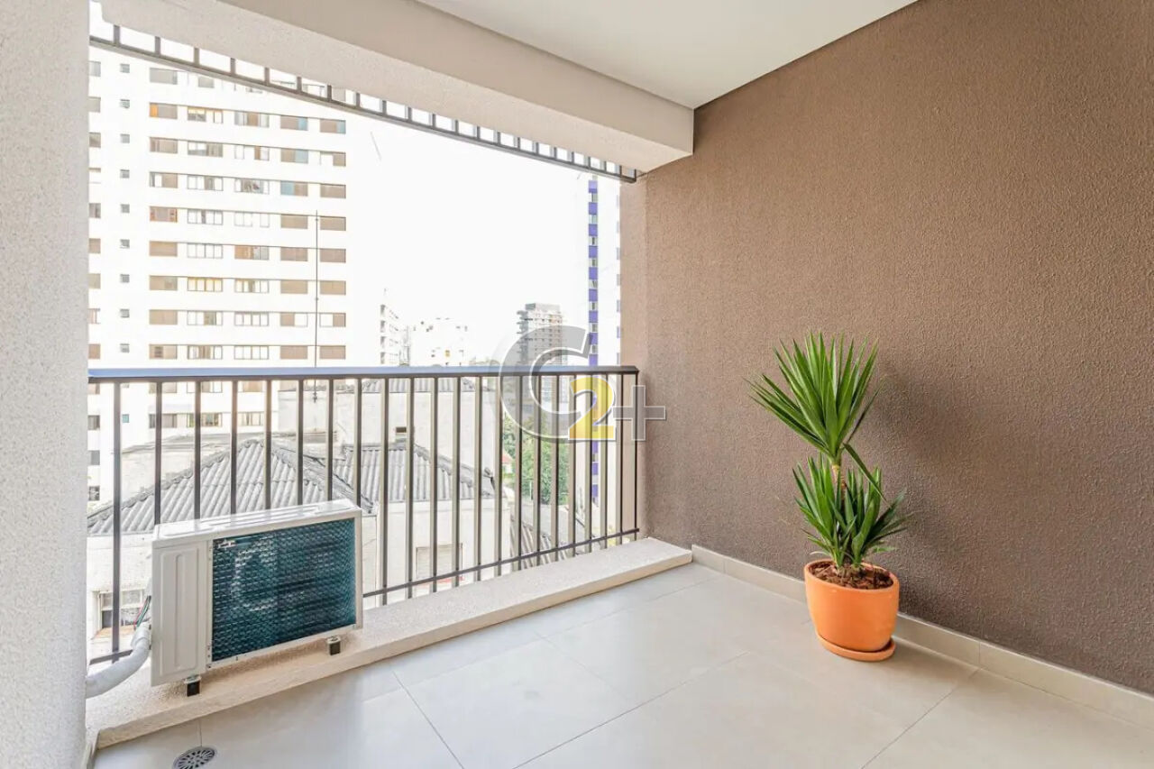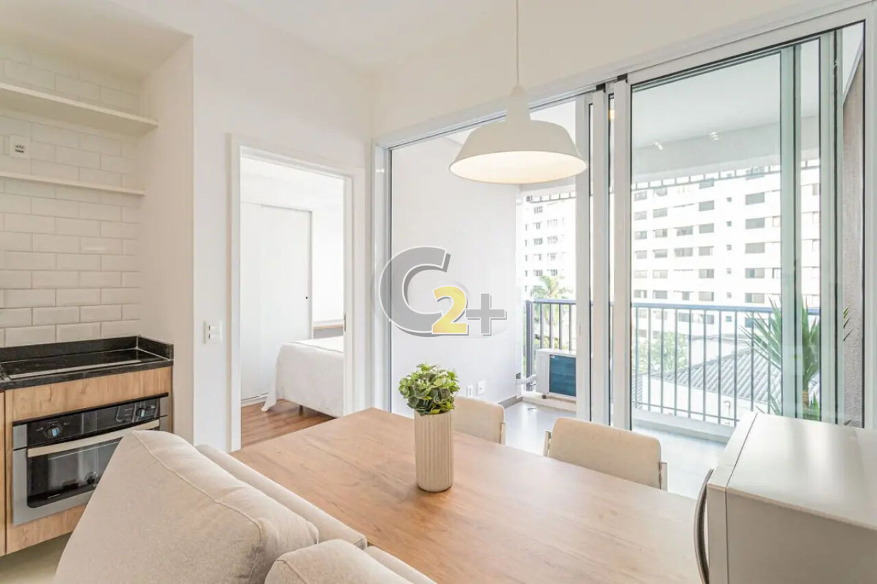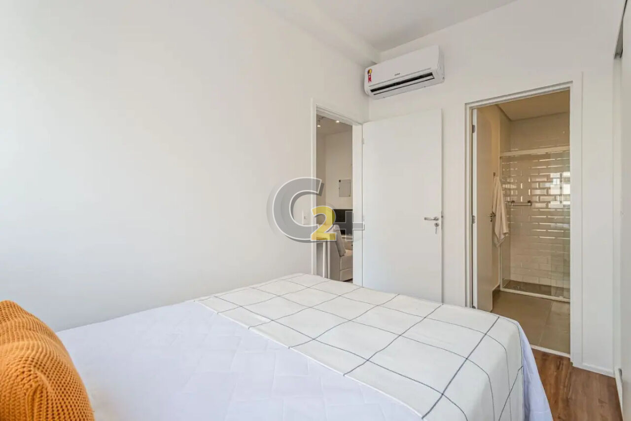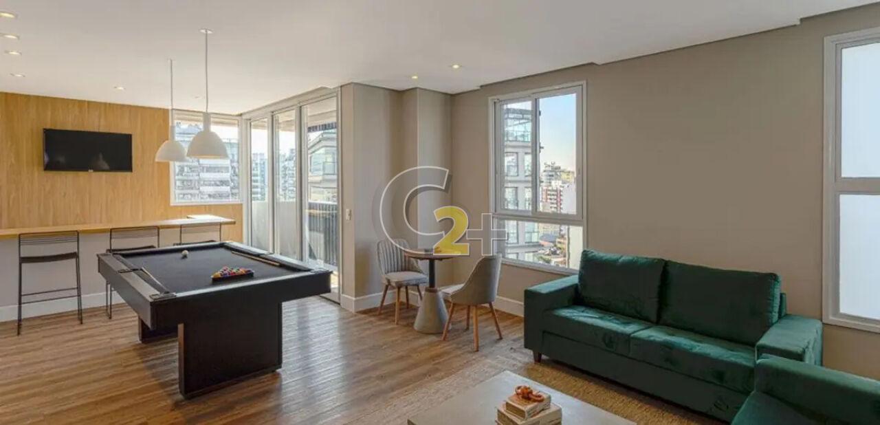 Studio a venda na Vila Madalena com 37m² 1 quarto, sem vaga de garagem. Semi- mobiliado, repleto de armários de boa qualidade já com fechamento de sacada e ar-condicionado, living para 2 ambientes e cozinha americana.