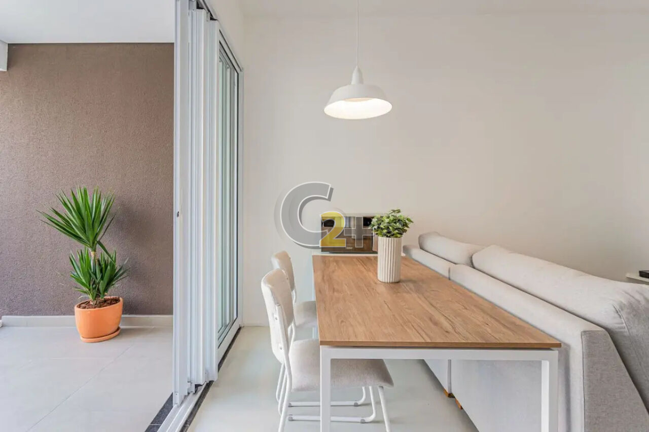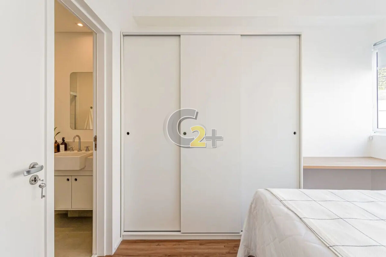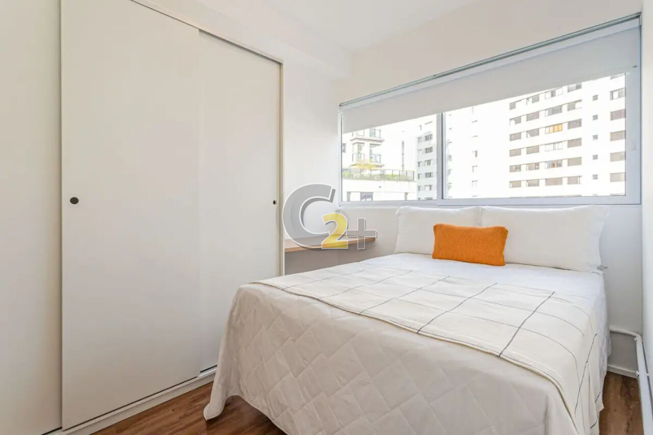 Studio a venda na Vila Madalena com 37m² 1 quarto, sem vaga de garagem. Semi- mobiliado, repleto de armários de boa qualidade já com fechamento de sacada e ar-condicionado, living para 2 ambientes e cozinha americana.