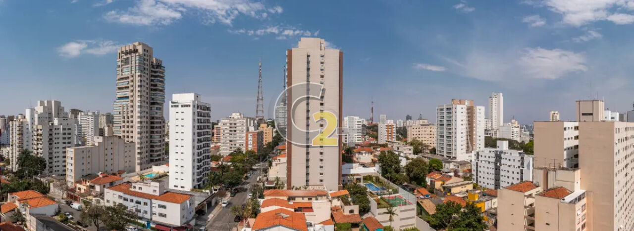 Apartamento à venda na Sumaré com 108m², 3 quartos todos suítes, banheiro, lavabo, sala para 2 ambientes com terraço e cozinha integrados, área de serviço e 2 vagas de garagem.