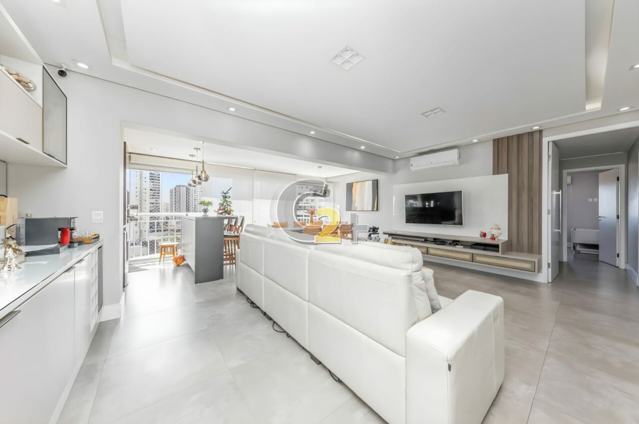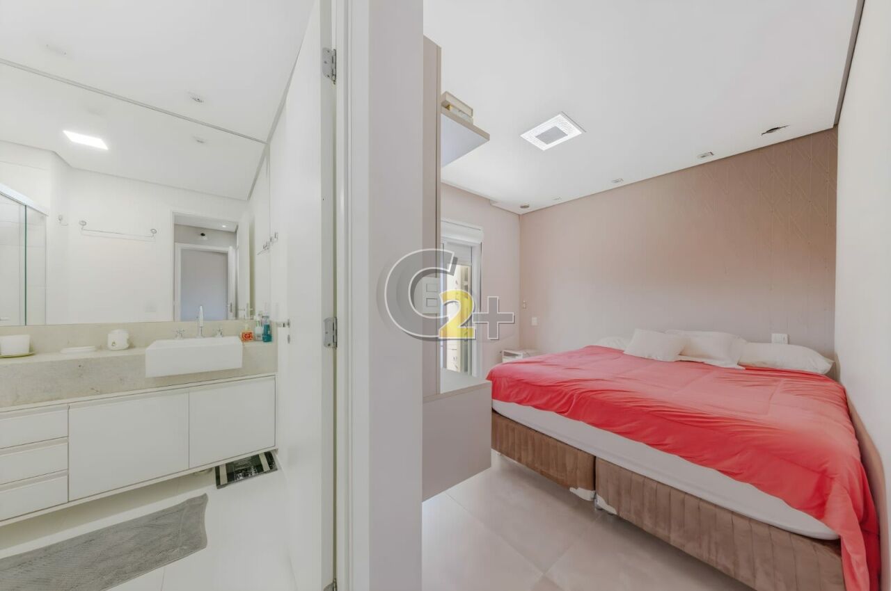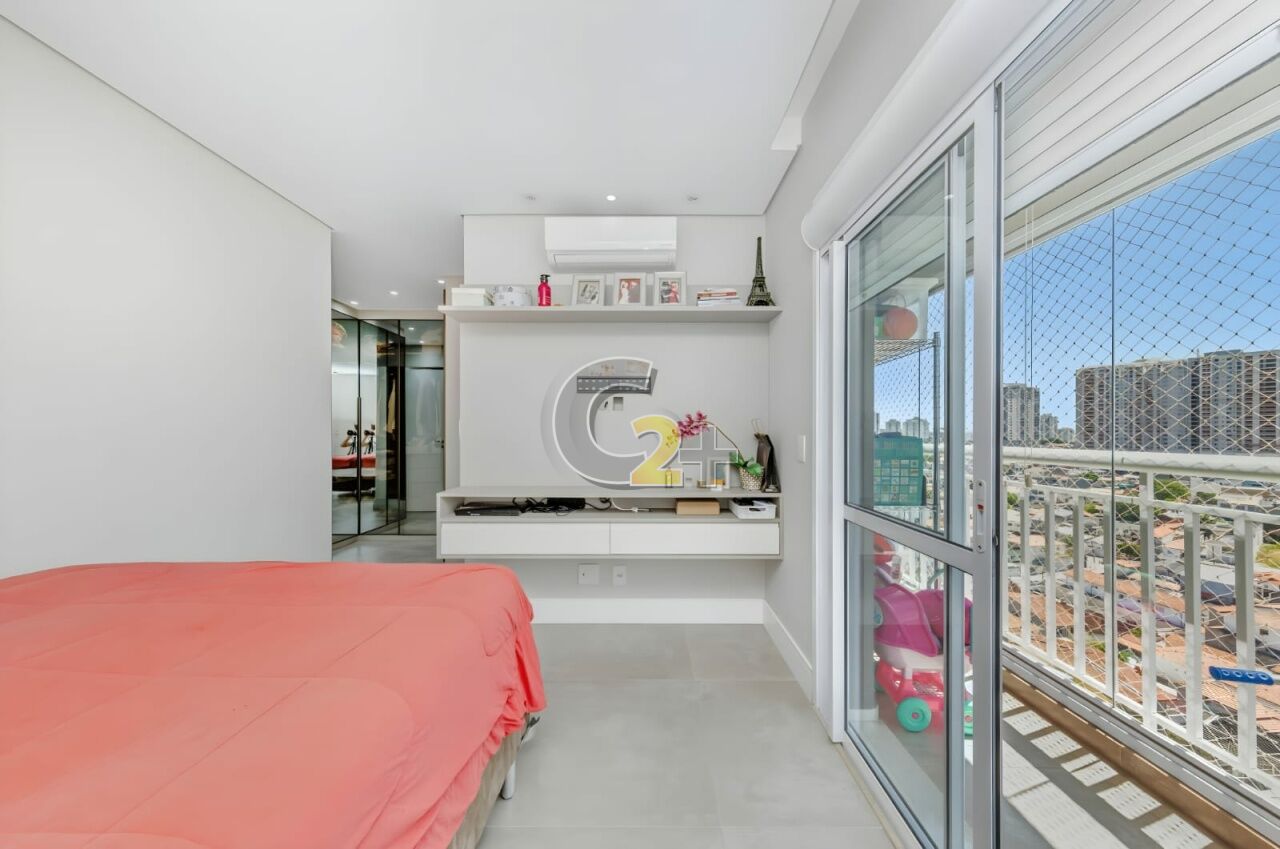 Apartamento à venda na Vila Firmiano Pinto com 128m², distribuído em 3 quartos, todos suítes, totalizando 4 banheiros. A planta contempla ambientes bem definidos, com sala integrada às áreas sociais, varanda com acesso pelo quarto, boa iluminação natural e circulação funcional. O imóvel dispõe de 2 vagas de garagem.