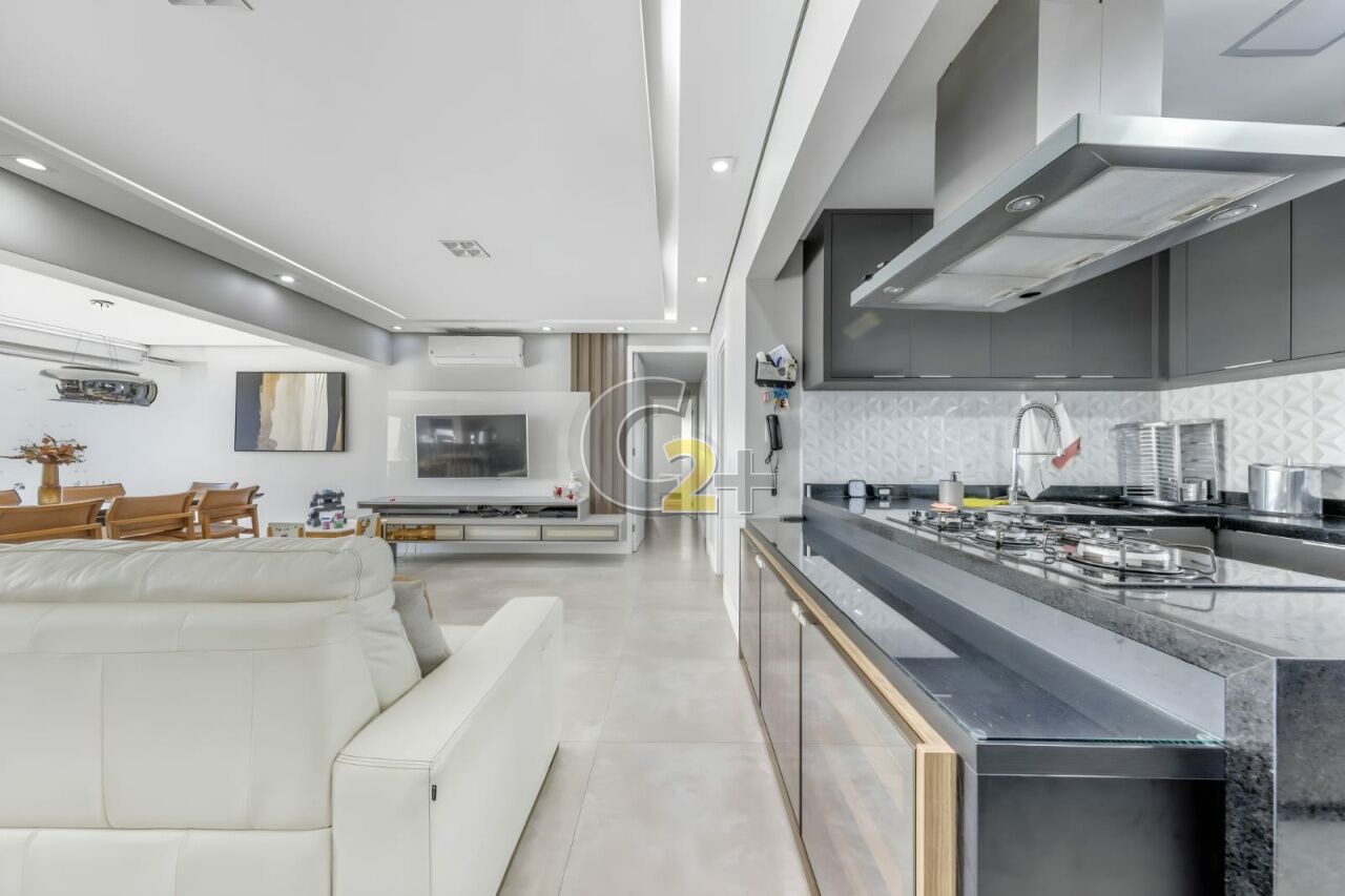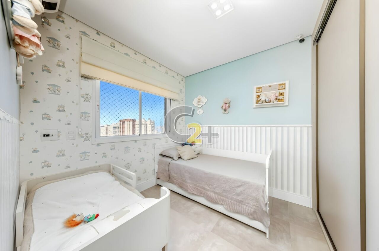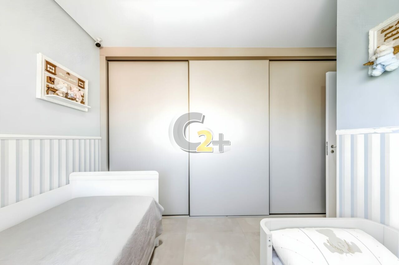 Apartamento à venda na Vila Firmiano Pinto com 128m², distribuído em 3 quartos, todos suítes, totalizando 4 banheiros. A planta contempla ambientes bem definidos, com sala integrada às áreas sociais, varanda com acesso pelo quarto, boa iluminação natural e circulação funcional. O imóvel dispõe de 2 vagas de garagem.