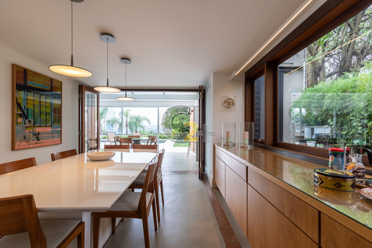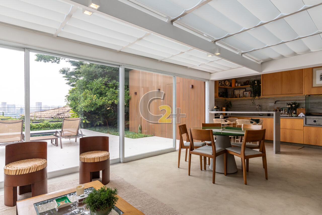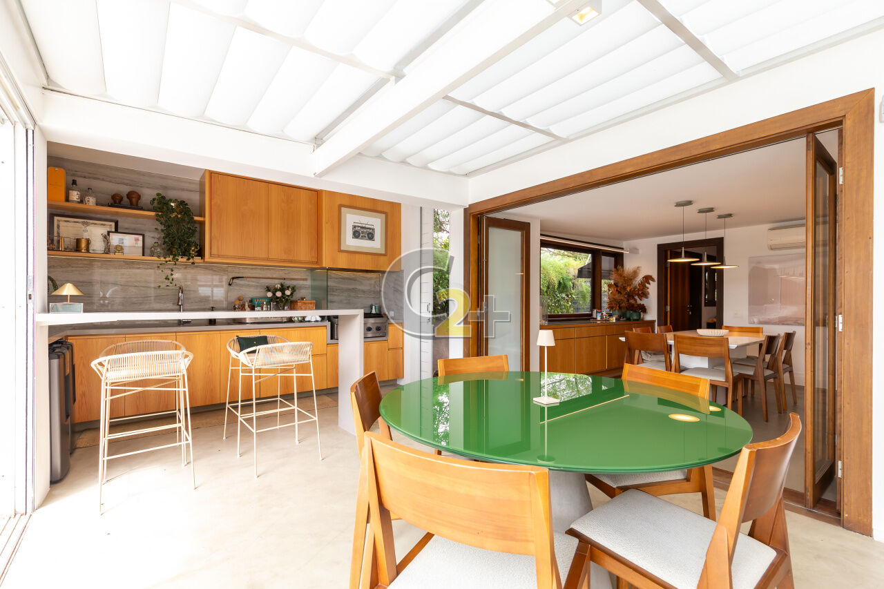 Casa de condomínio no Jardim Guedala com 608m² , 3 quartos sendo 3 suítes, banheiro social, sala para 3 ambientes, cozinha planejada, área de serviço completa, 3 vagas de garagem, piscina privativa e churrasqueira.