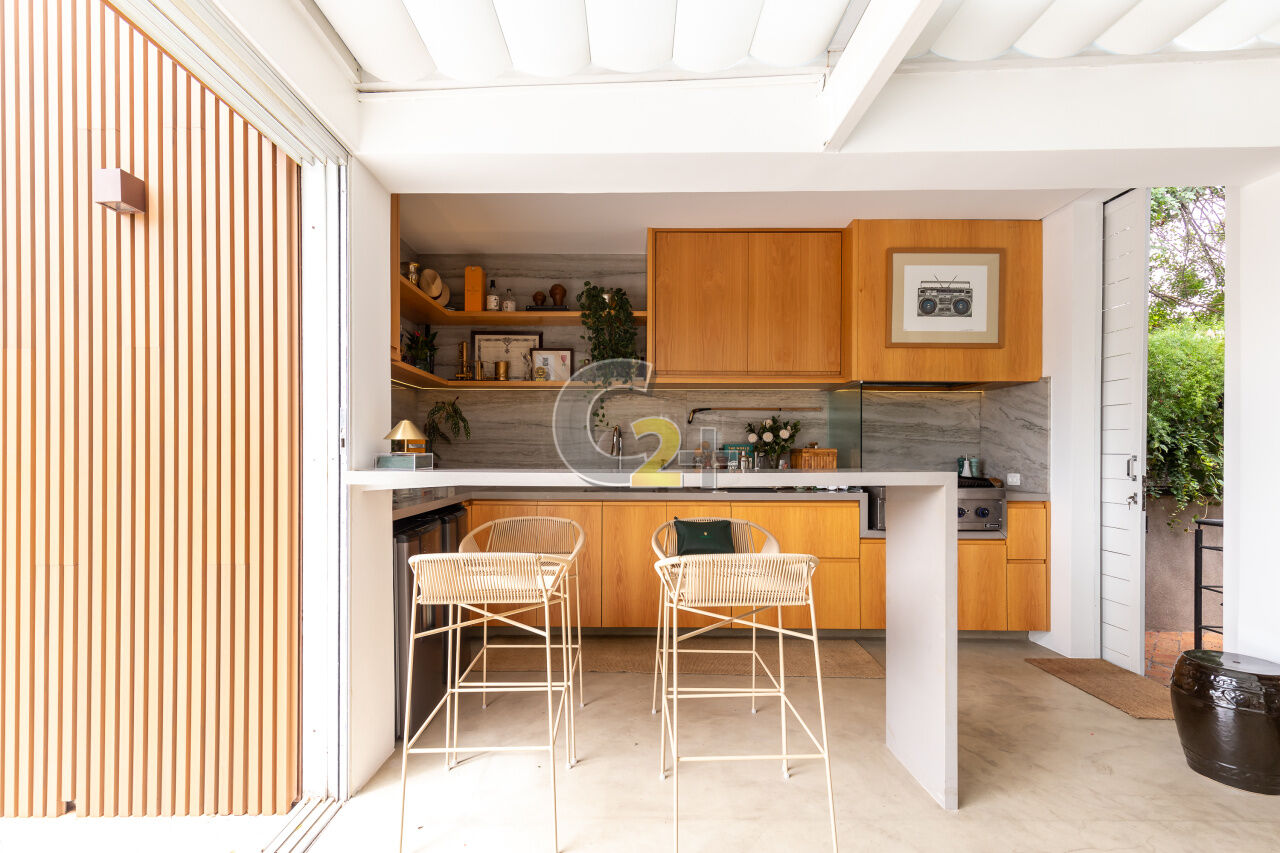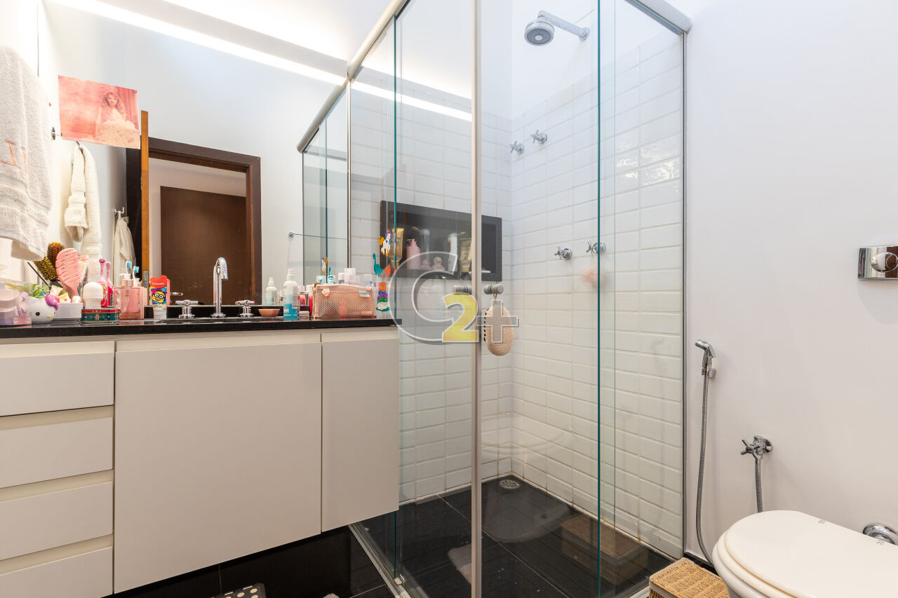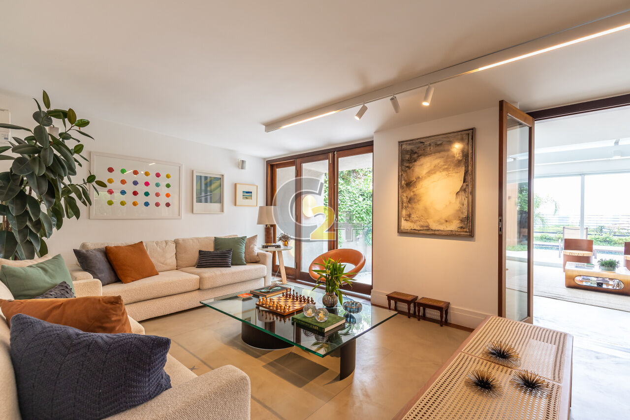 Casa de condomínio no Jardim Guedala com 608m² , 3 quartos sendo 3 suítes, banheiro social, sala para 3 ambientes, cozinha planejada, área de serviço completa, 3 vagas de garagem, piscina privativa e churrasqueira.