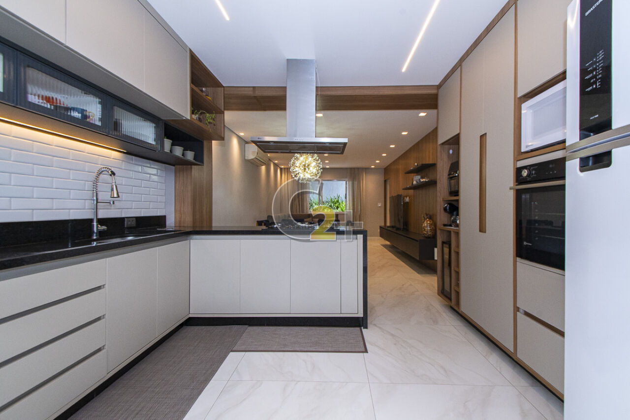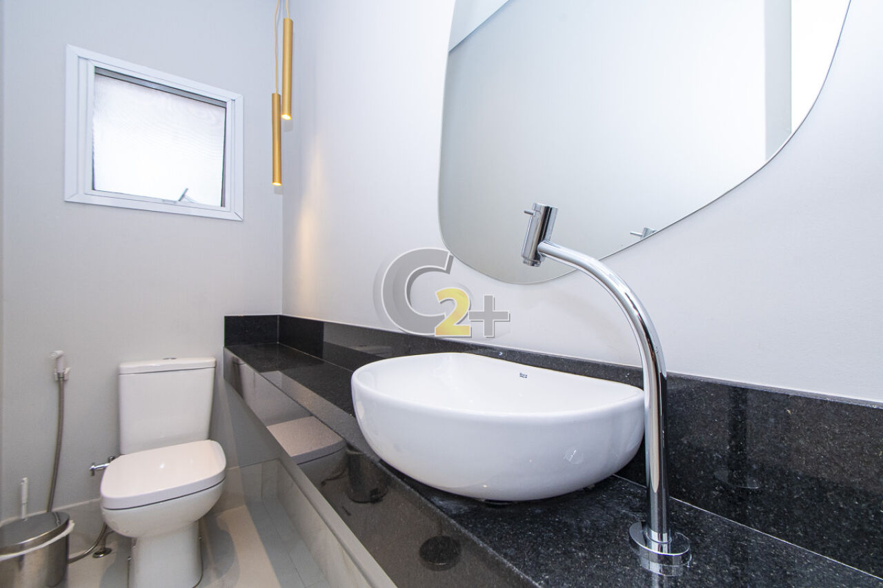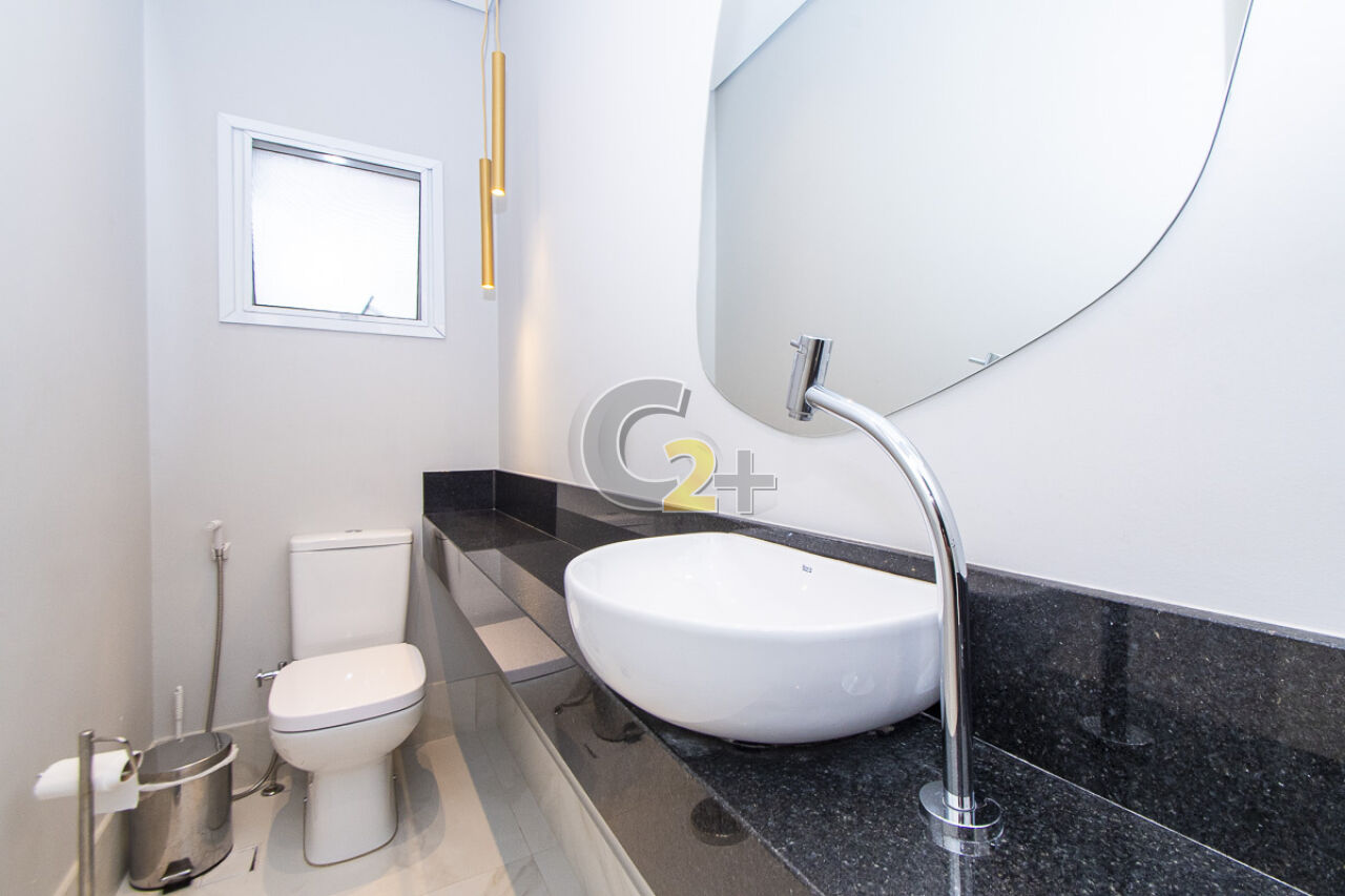 Ao entrar nesta belíssima casa, no térreo, temos sala para 2 ambientes, com ar condicionado, muita ventilação e luminosidade, lavabo próximo a sala de jantar, cozinha repleta de armários, charmosa e iluminada por uma janela com vista para o quintal com churrasqueira.