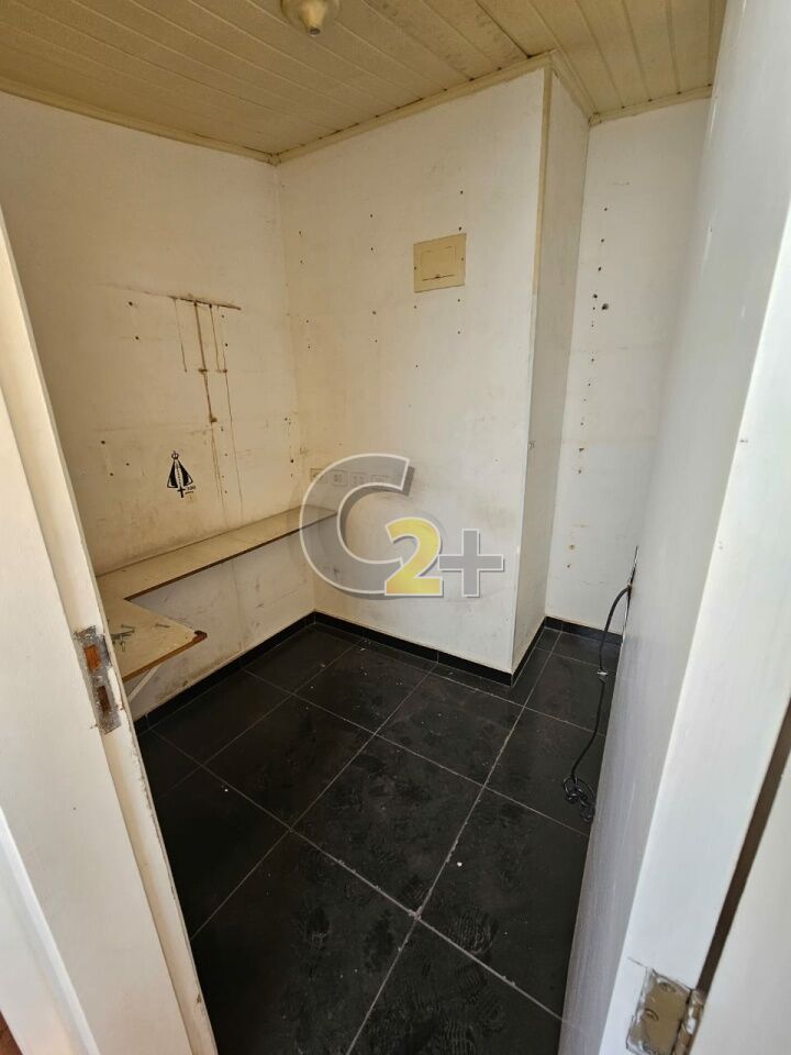 Nos fundos, subindo escada lateral, em cima da dependência de serviço tem um escritório e um depósito