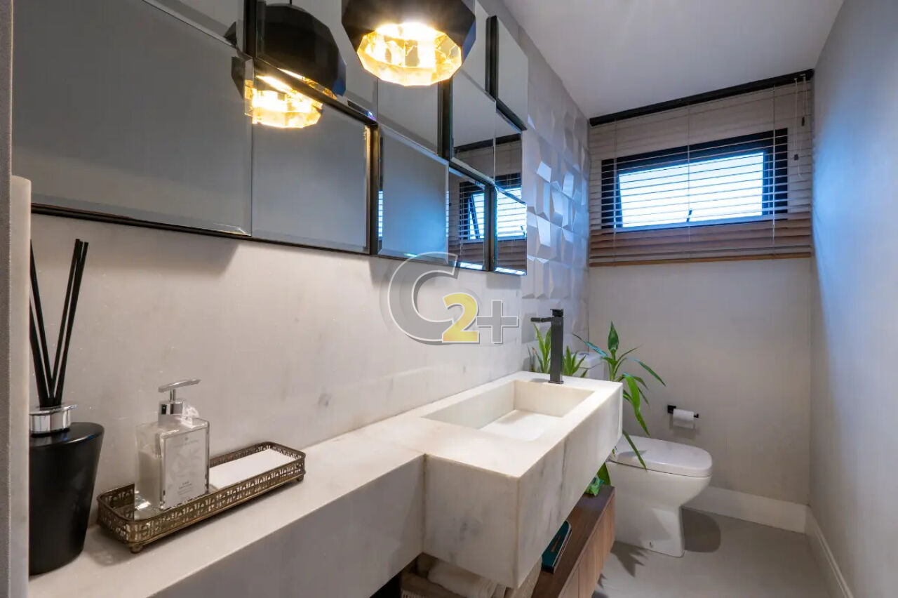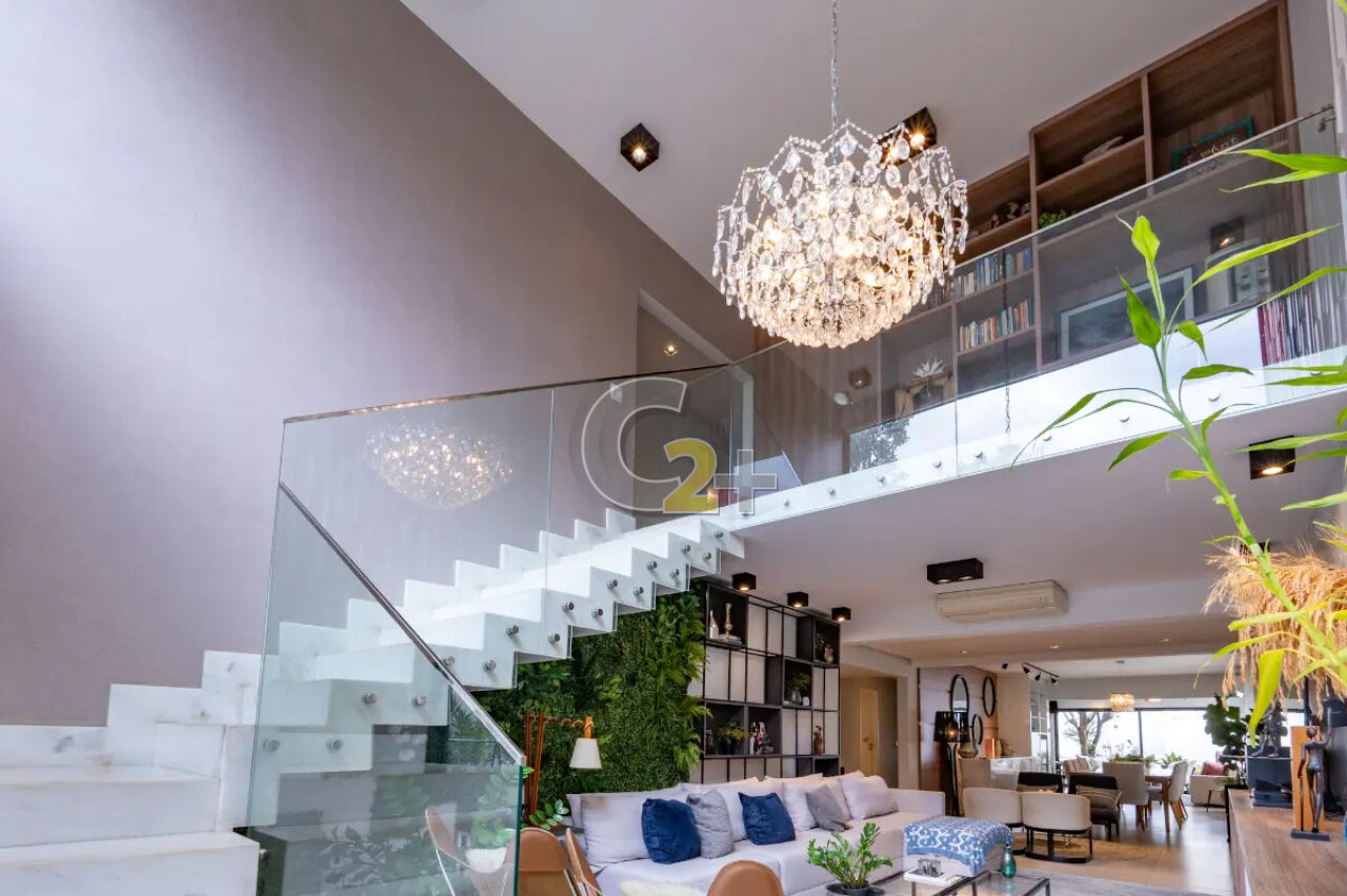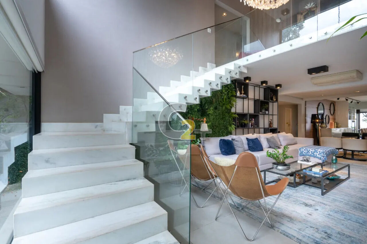 No térreo, o living é o grande protagonista: um espaço amplo e integrado, com sala de TV de pé-direito duplo, sala de estar, jantar e uma sofisticada área gourmet com churrasqueira ? perfeita para receber com elegância. Completam o piso um lavabo, escritório, cozinha independente e piscina privativa, proporcionando lazer e praticidade no dia a dia.