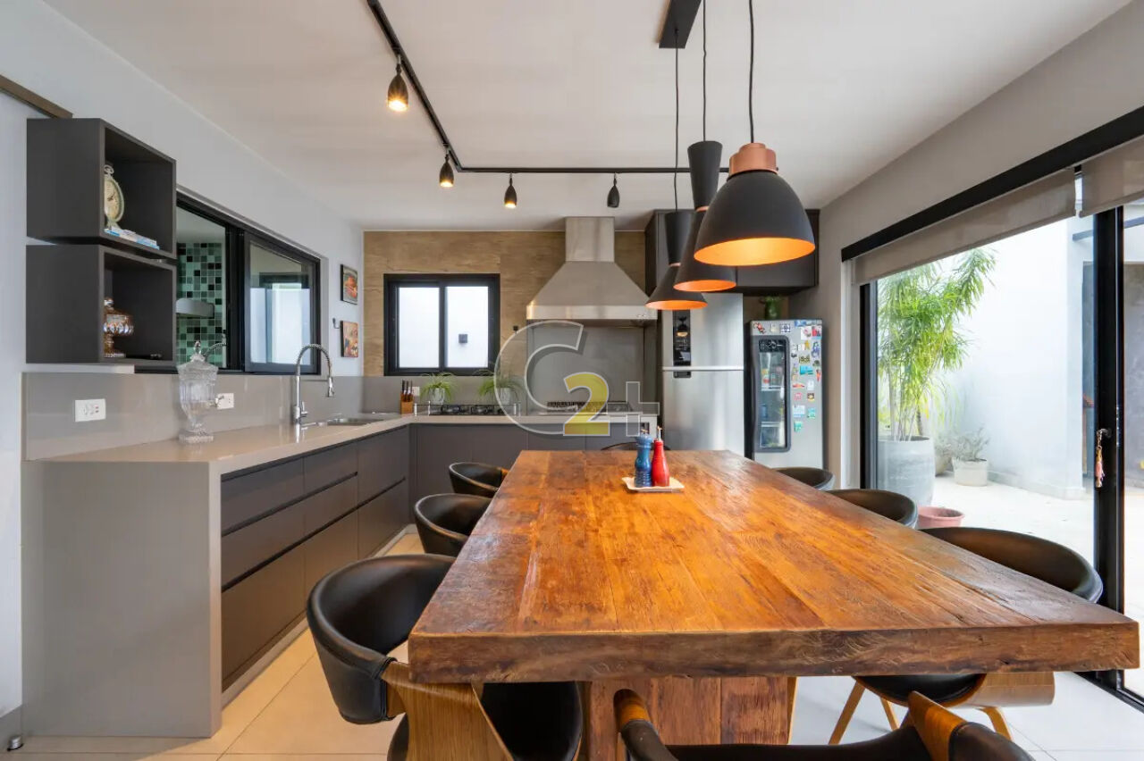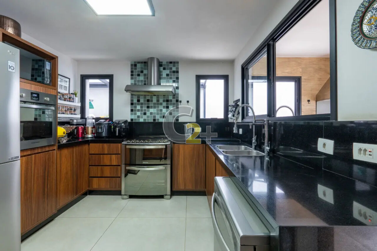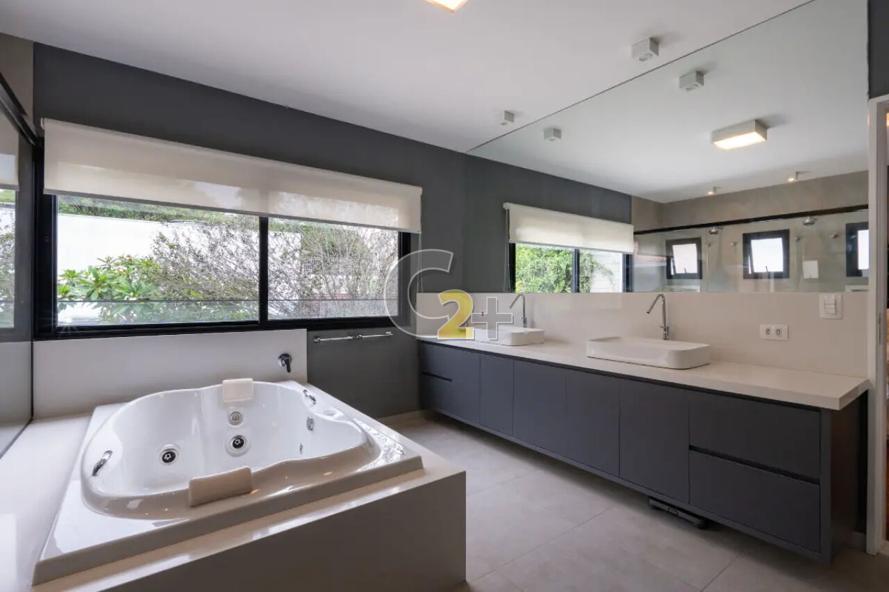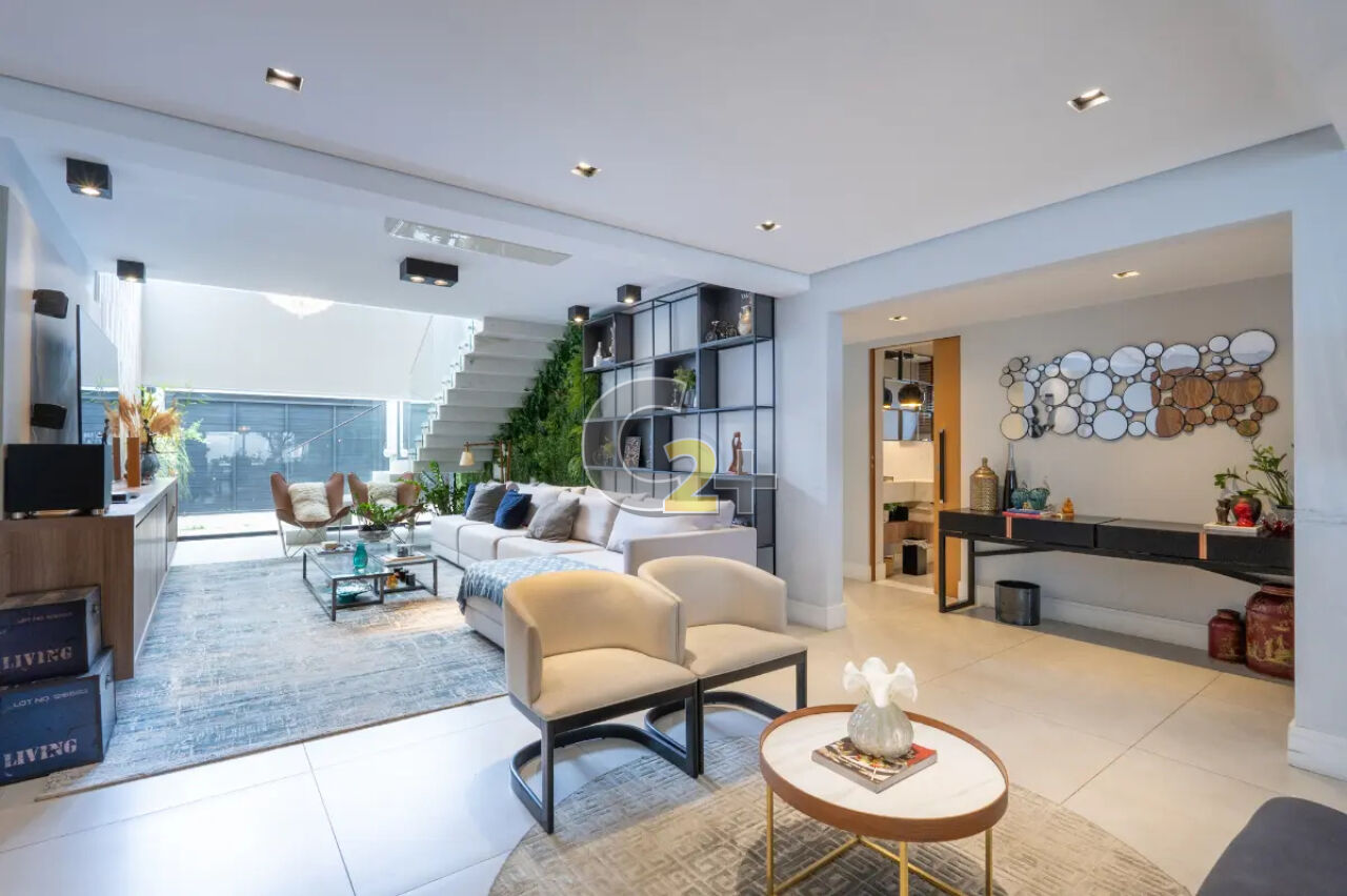 No térreo, o living é o grande protagonista: um espaço amplo e integrado, com sala de TV de pé-direito duplo, sala de estar, jantar e uma sofisticada área gourmet com churrasqueira ? perfeita para receber com elegância. Completam o piso um lavabo, escritório, cozinha independente e piscina privativa, proporcionando lazer e praticidade no dia a dia.