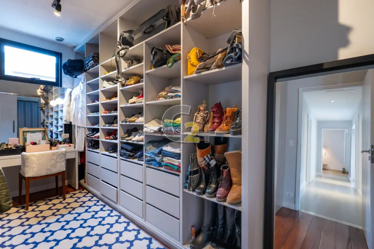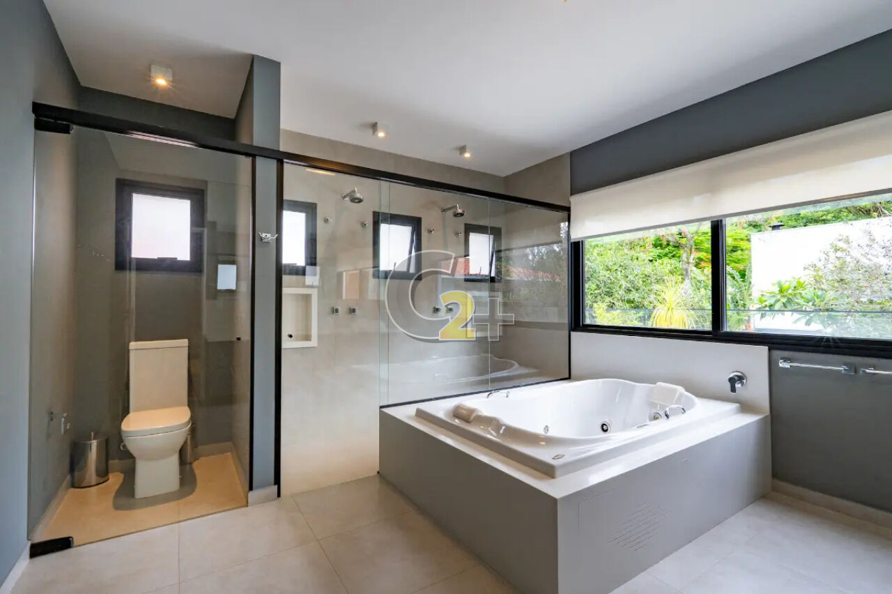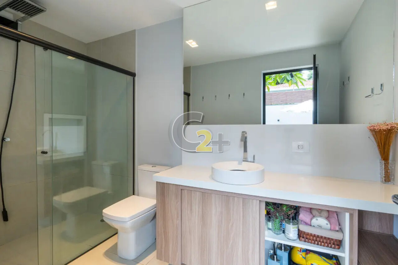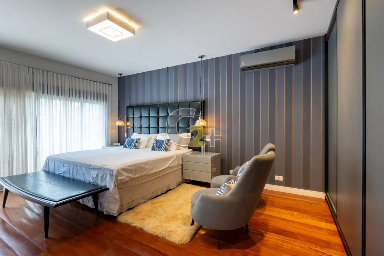 No piso superior estão as quatro suítes, todas com excelente iluminação natural. A suíte master é um verdadeiro refúgio, com closet, banheiro com jacuzzi e terraço exclusivo, ideal para relaxar e apreciar a tranquilidade do bairro.