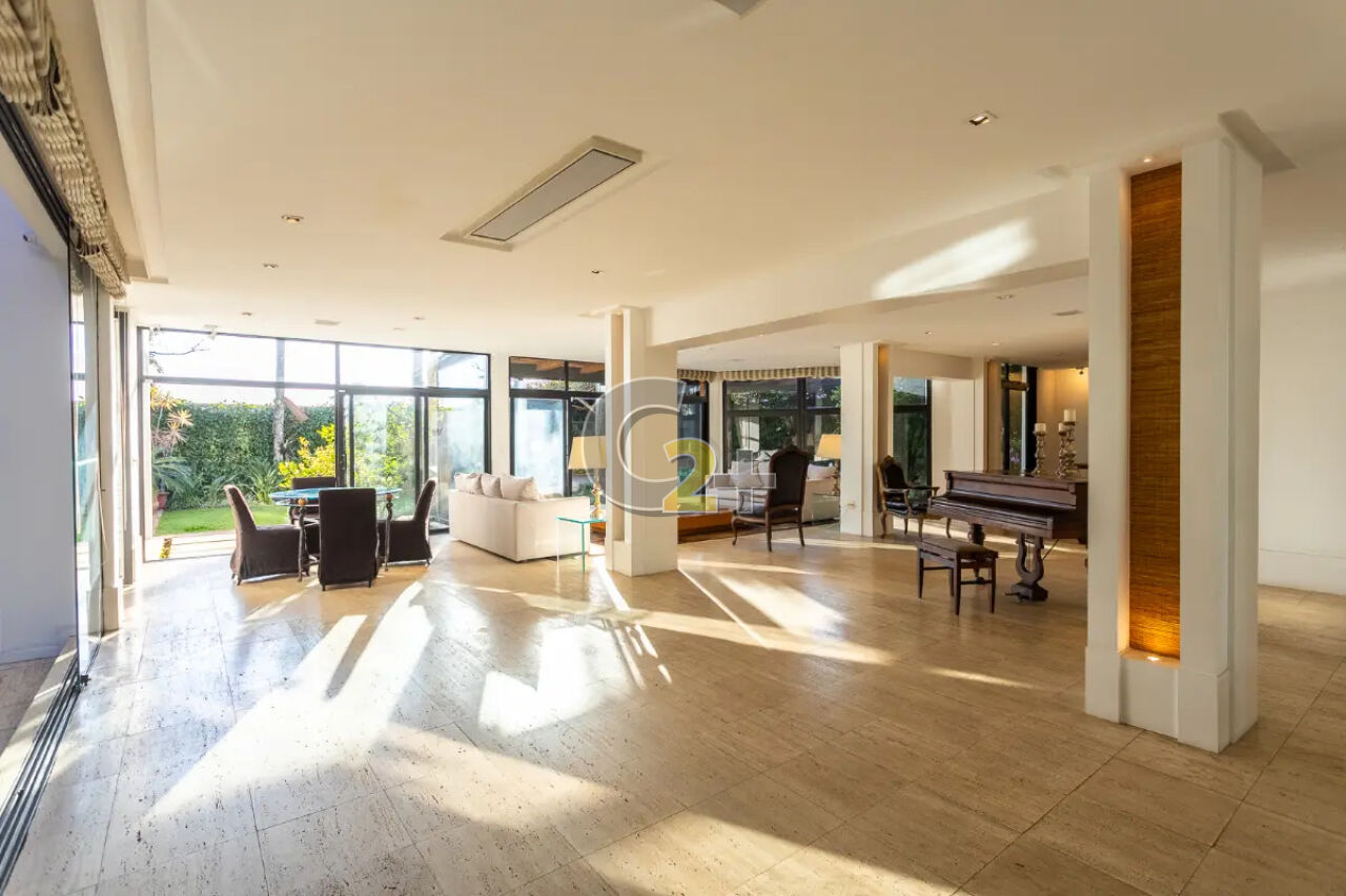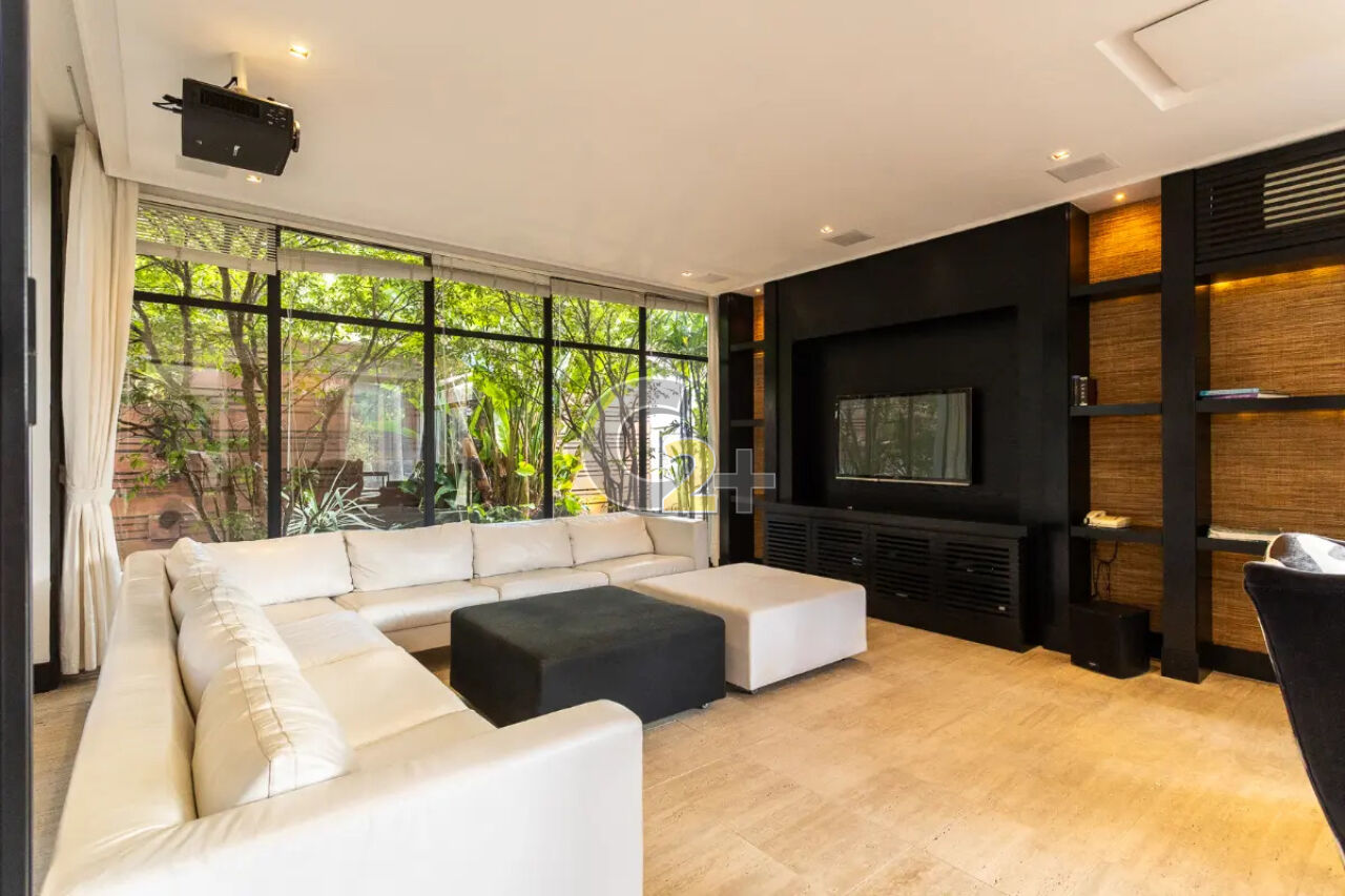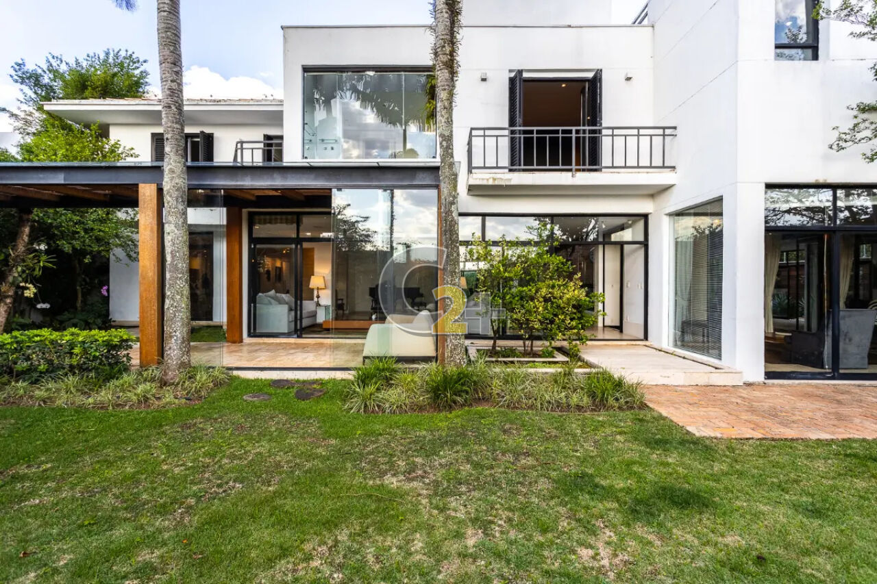 Com arquitetura em estilo moderno, a casa se revela a partir de uma imponente piscina aquecida que nasce no jardim e com seu teto retrátil, avança pela casa até as salas de jantar, estar com lareira e mídia, criando uma integração harmoniosa com muita luminosidade em um ambiente vibrante e funcional. O projeto arquitetônico privilegia a luz natural, com o envidraçamento que assegura ambientes distintos, porém visualmente conectados. No térreo, o living conecta a área social ao escritório, lavabo, ampla cozinha com copa integrada e lavanderia.