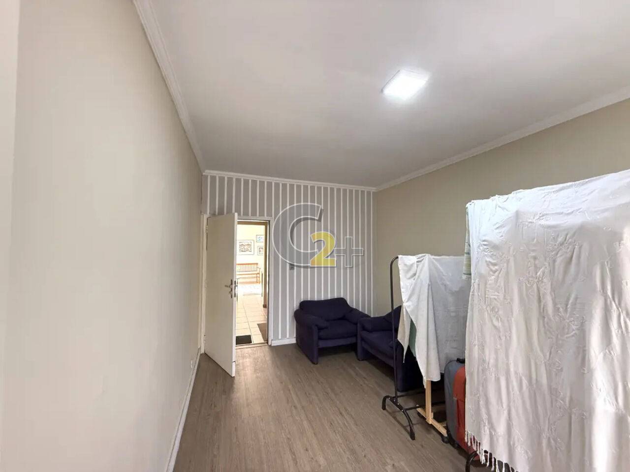 No piso superior : 4 salas com armarios embutidos, 2 banheiros e despensa.