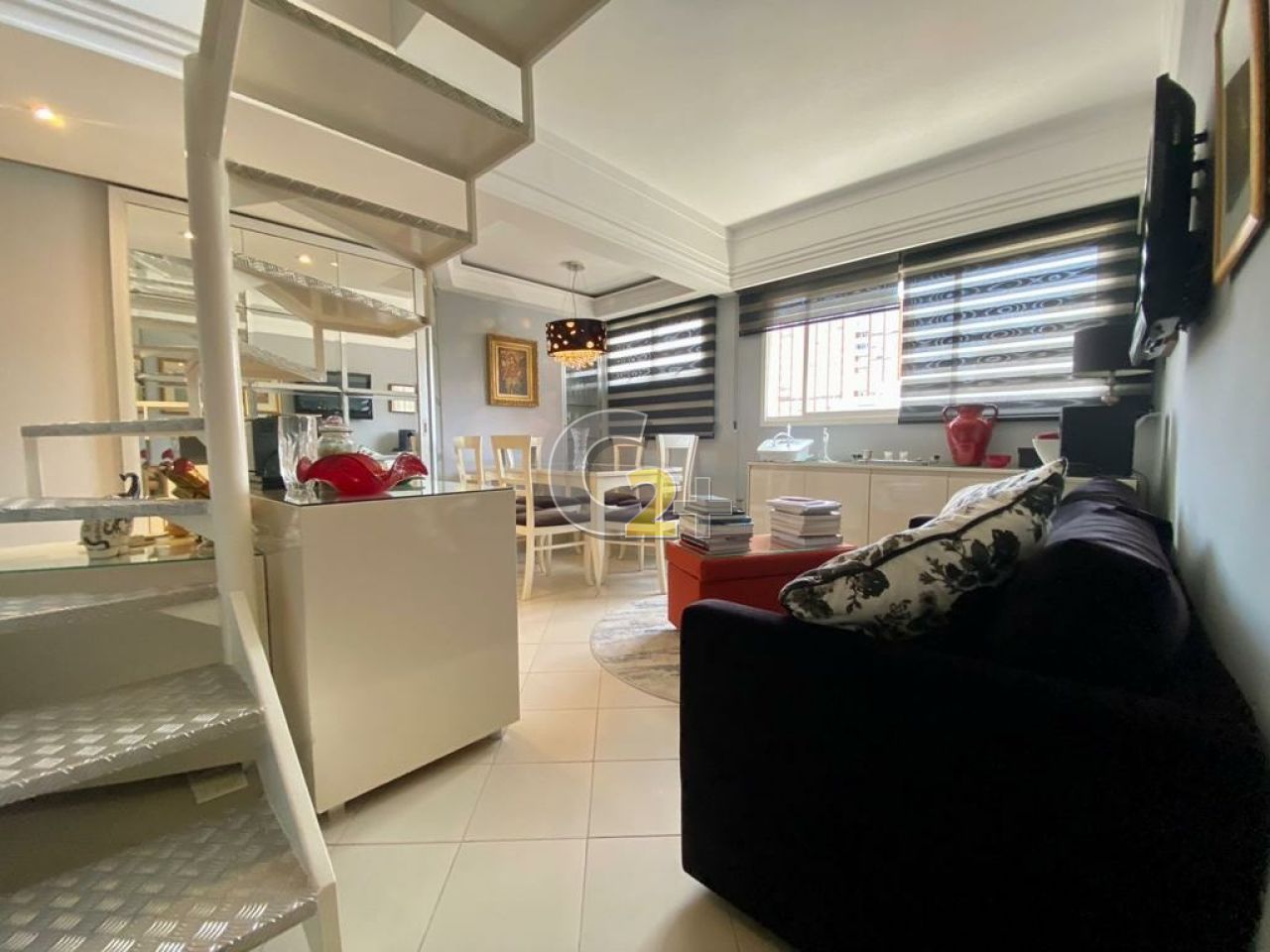 A cobertura dispõe se de um espaço amplo e bem planejado, distribuído em dois pisos. No piso inferior, você encontra uma suíte máster com armários planejados, sala de estar e jantar integradas, cozinha reformada há menos de um ano, área de serviço e um banheiro exclusivo para funcionários. Já no piso superior, você se depara com uma confortável sala com lareira, um lavabo com box para apoio à piscina e uma linda área externa que inclui um espaço gourmet conectado à piscina. Todos os ambientes possuem ar-condicionado para proporcionar maior conforto aos moradores.