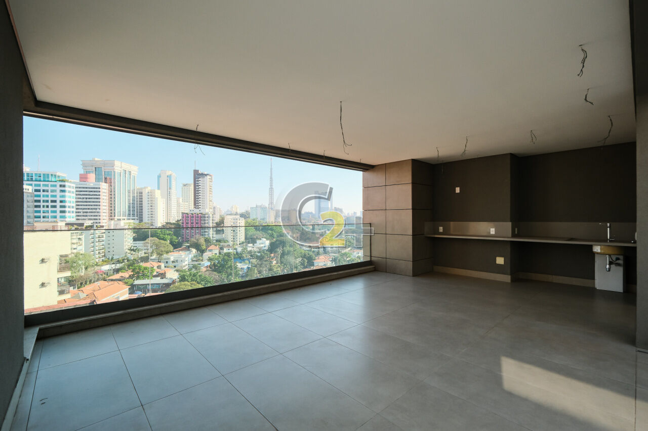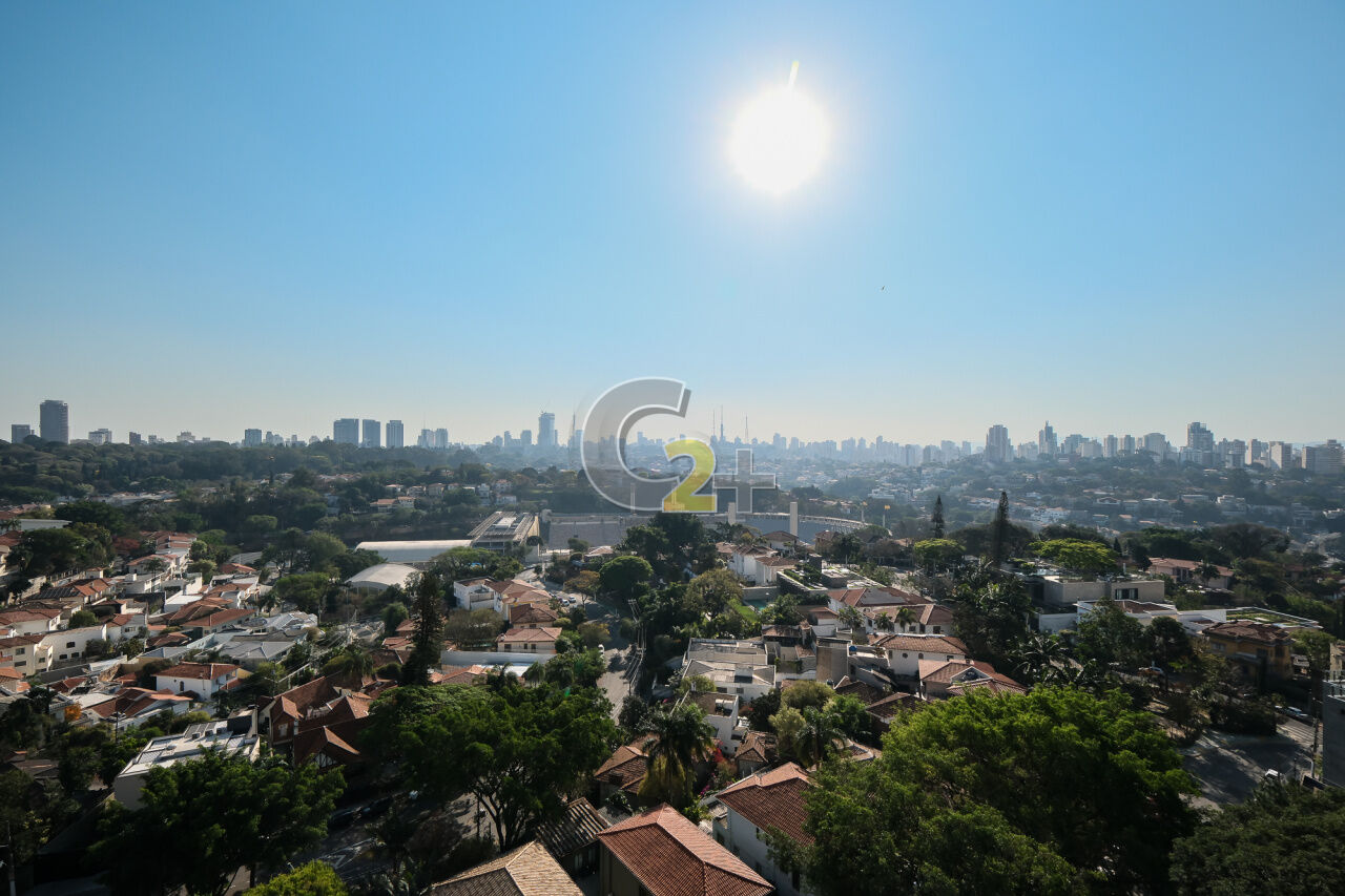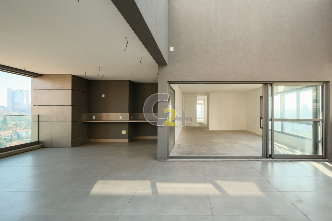 Cobertura à venda em Higienópolis possui planta ampla composta por 4 suítes, total de 6 banheiros, ambientes integrados e bem distribuídos, com vista permanente. Conta com 3 vagas de garagem e padrão construtivo elevado, com acabamentos de alto nível e espaços projetados para diferentes usos no dia a dia.