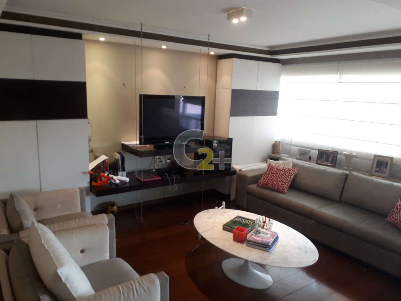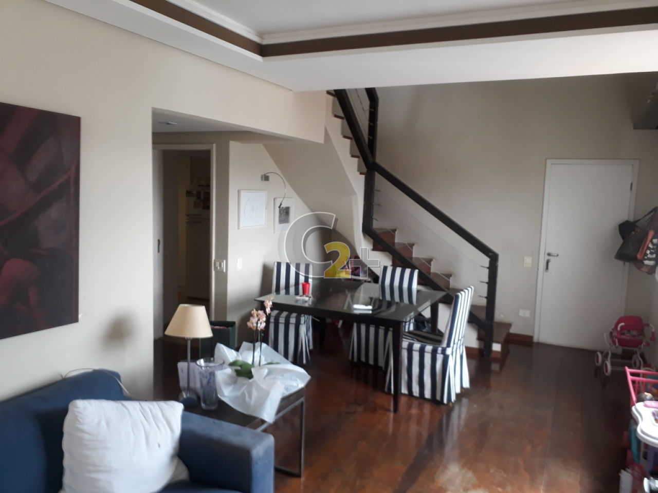 Cobertura duplex totalmente reformada. Amplas salas de estar e jantar nos dois andares. No piso superior, sala com lareira e terraço com jacuzzi e espaço gourmet com churrasqueira.