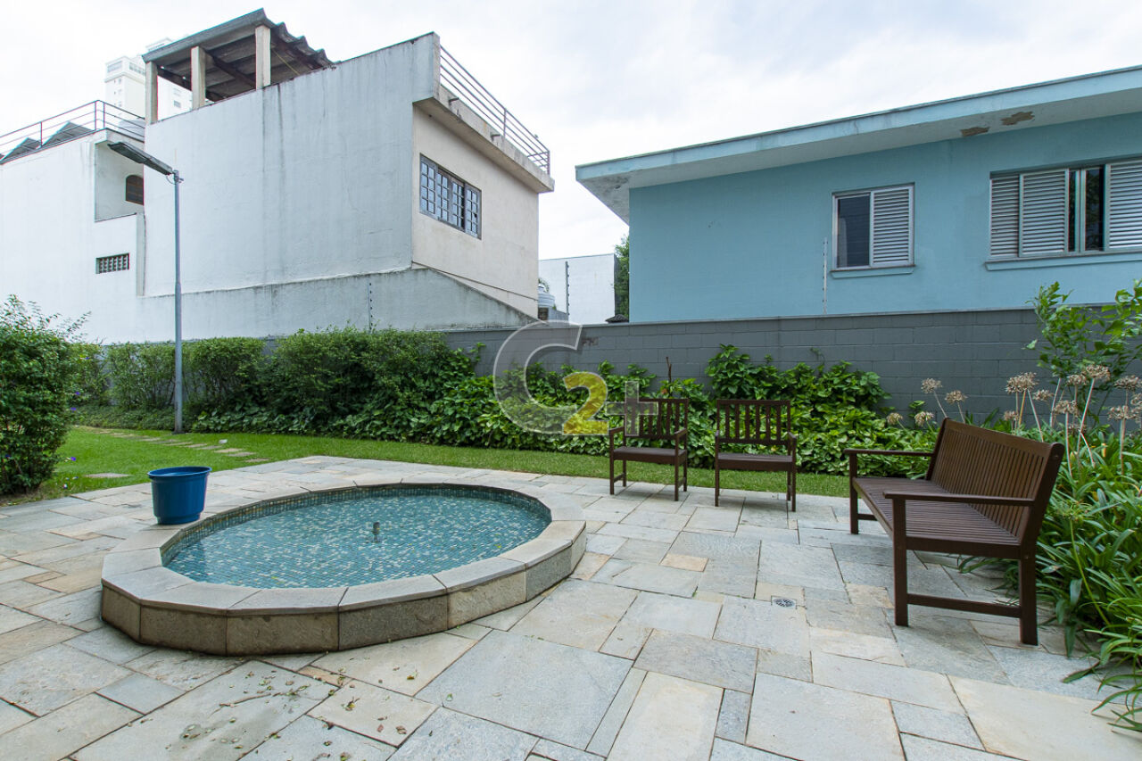 Área externa com jardim. ofurô e churrasqueira.