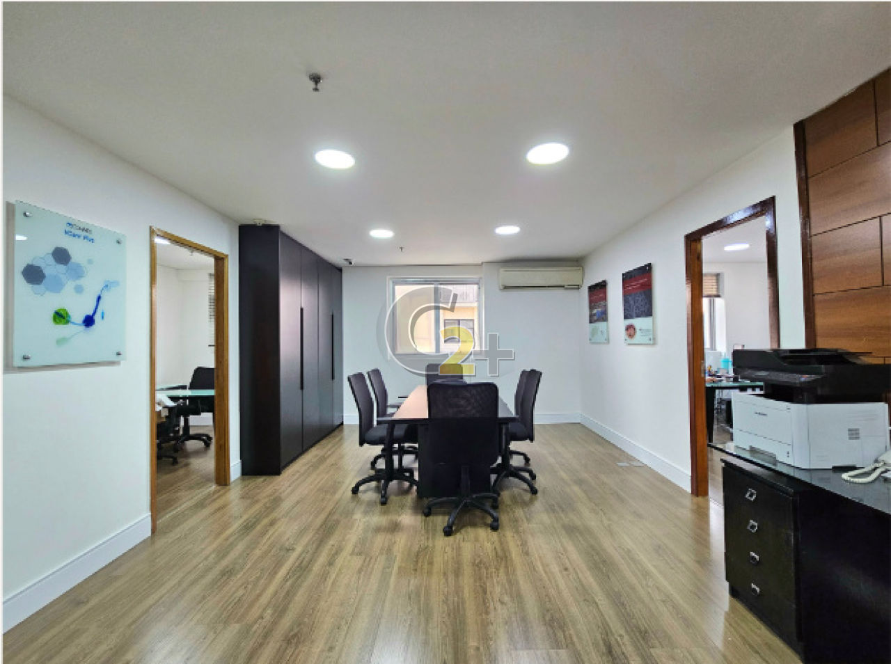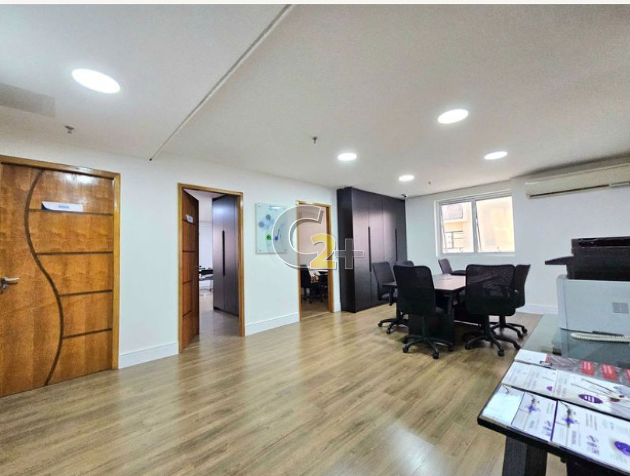 Conjunto comercial à venda em Moema com 151m², 5 salas, sendo 1 de diretoria com banheiro privativo, ar condicionado, cozinha e copa, 3 banheiros, 4 vagas com uso de manobrista.