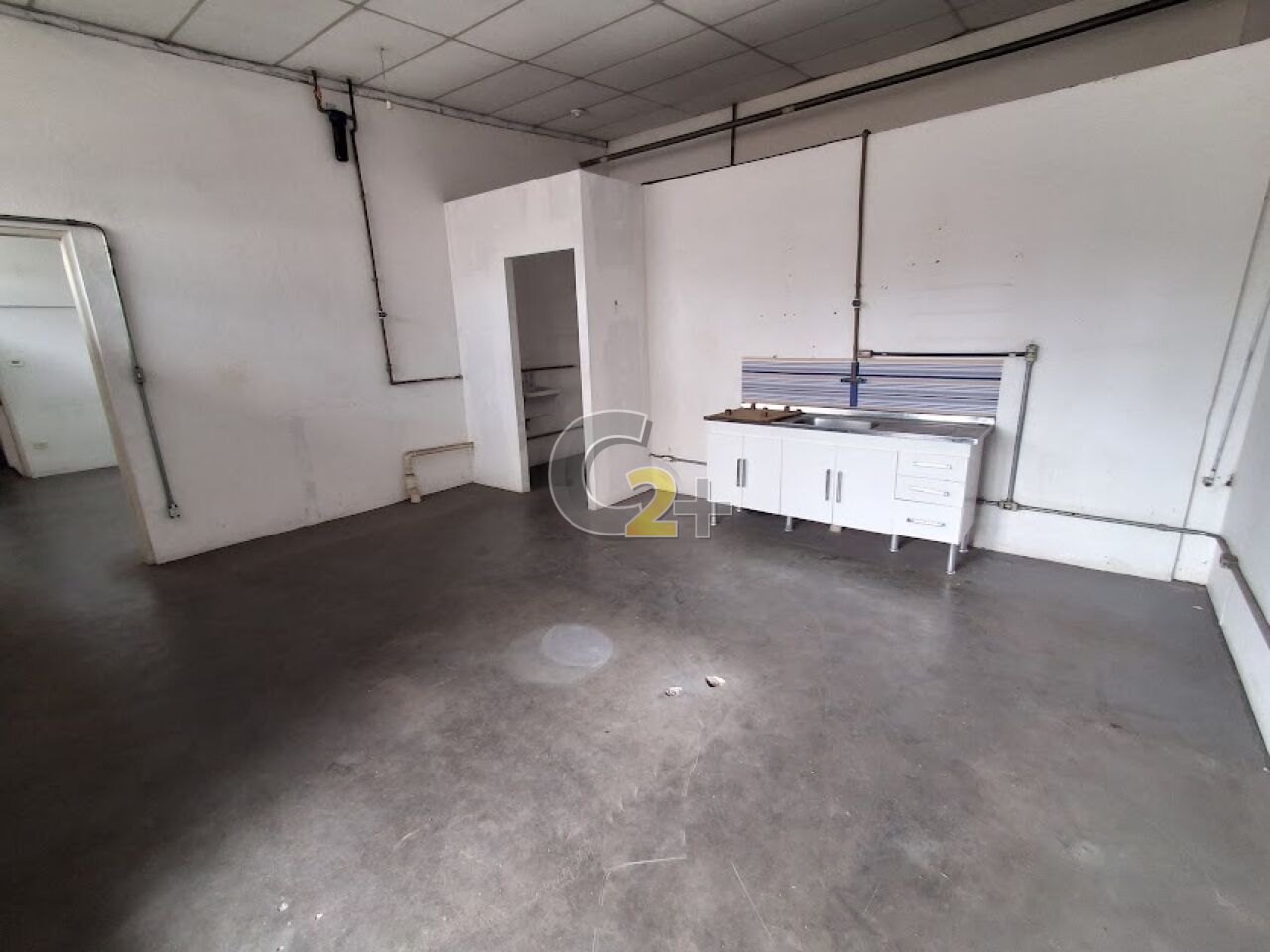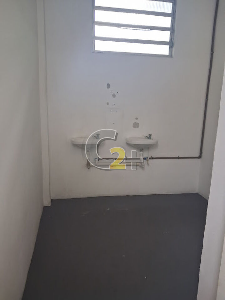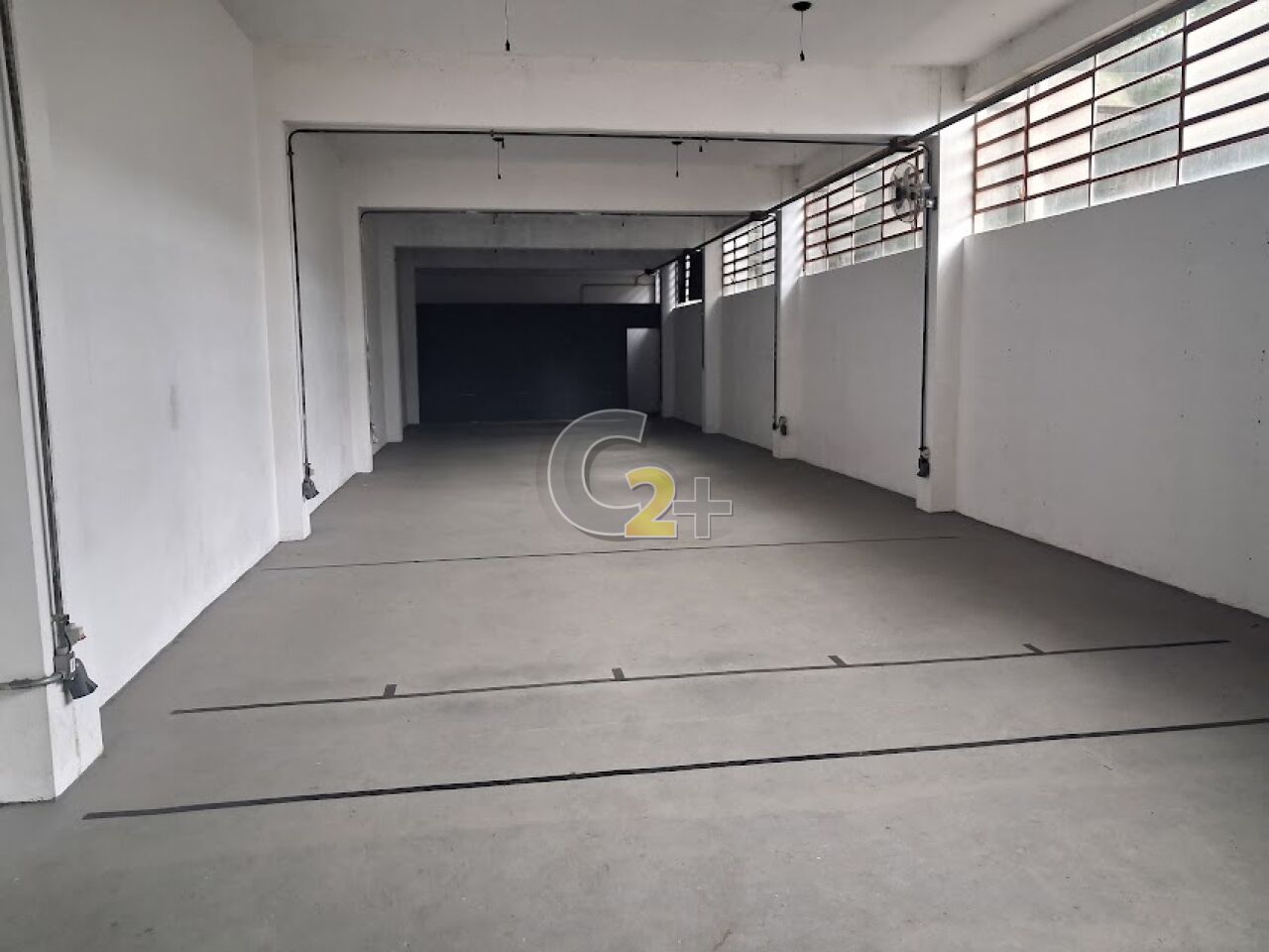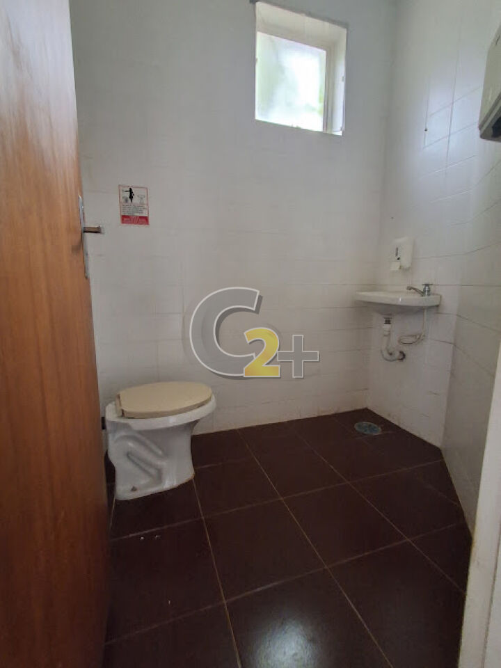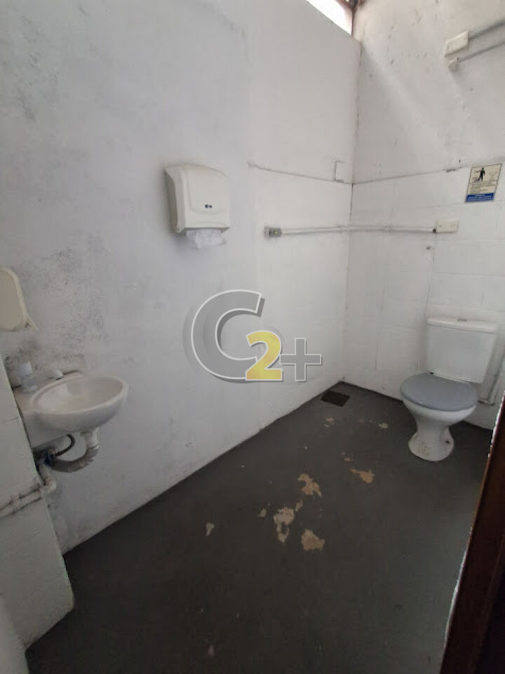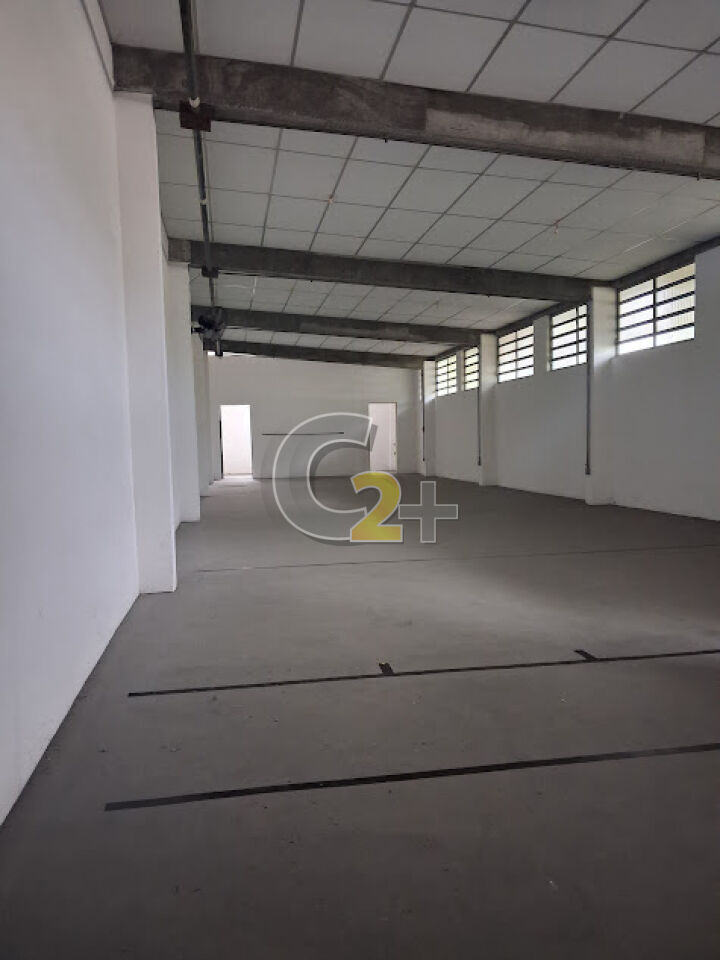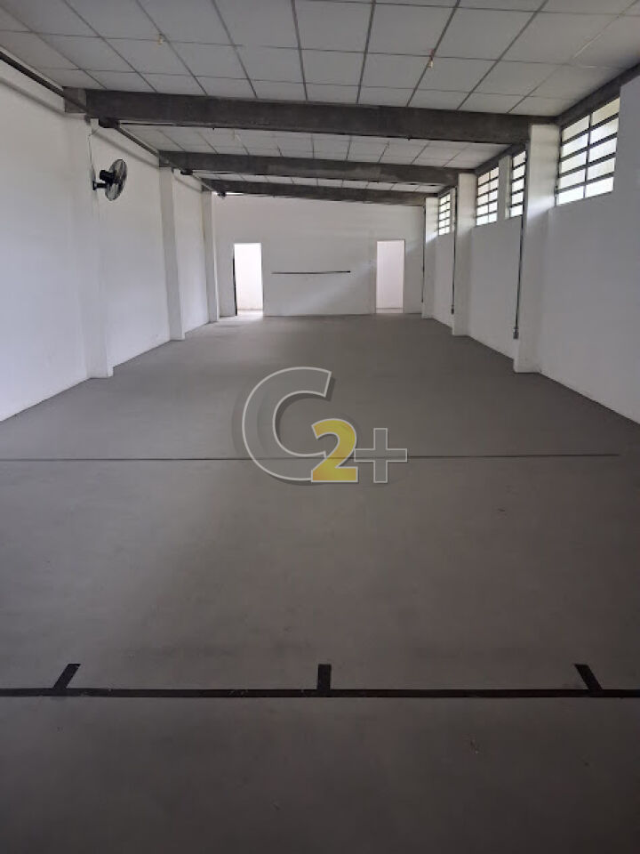 Galpão 1º andar: aprox. 162m² (27m x 6m), pé direito alto (3,3m), banheiros.